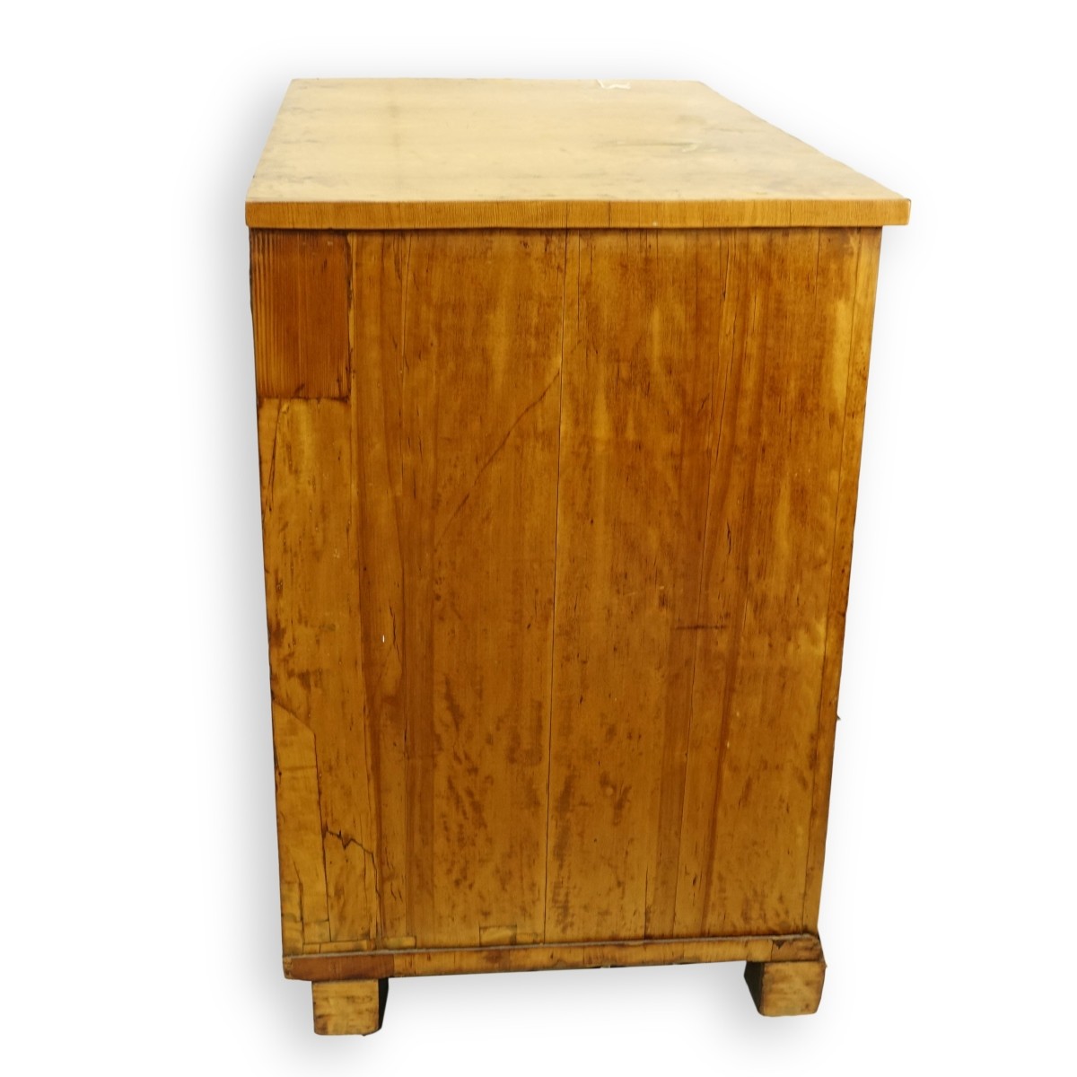 Antique Art Deco Biedermeier Flame Birch Chest of Drawers. Three drawers and carved plinth, Measures 32" x 38-1/2" x 21-3/8". Condition: Scratches to feet, minor losses to wood Estimate: $500.00 - $700.00 Domestic Shipping: Third party