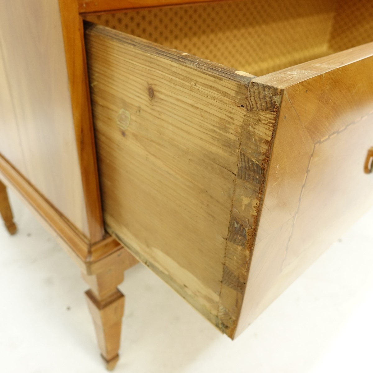 19th Century Swedish Empire Style Inlaid Commode. Two drawers and stands on tapering legs. Measures 33-1/4" H x 42-3/4" W x 20-3/4" D. Condition: Normal splits to top overall good condition Estimate: $1500.00 - $2500.00 Domestic Shipping: Third party