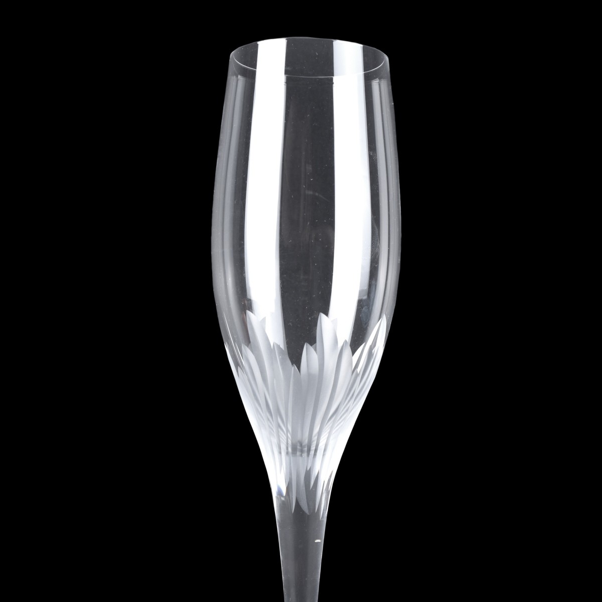 Eight (8) Rosenthal Summer Champagne Flutes. Grey cut swirls on base of bowl, acid etch signature Rosenthal. Measures 10" H Condition: Good condition. Estimate: $100.00 - $200.00 Domestic Shipping: $68.00