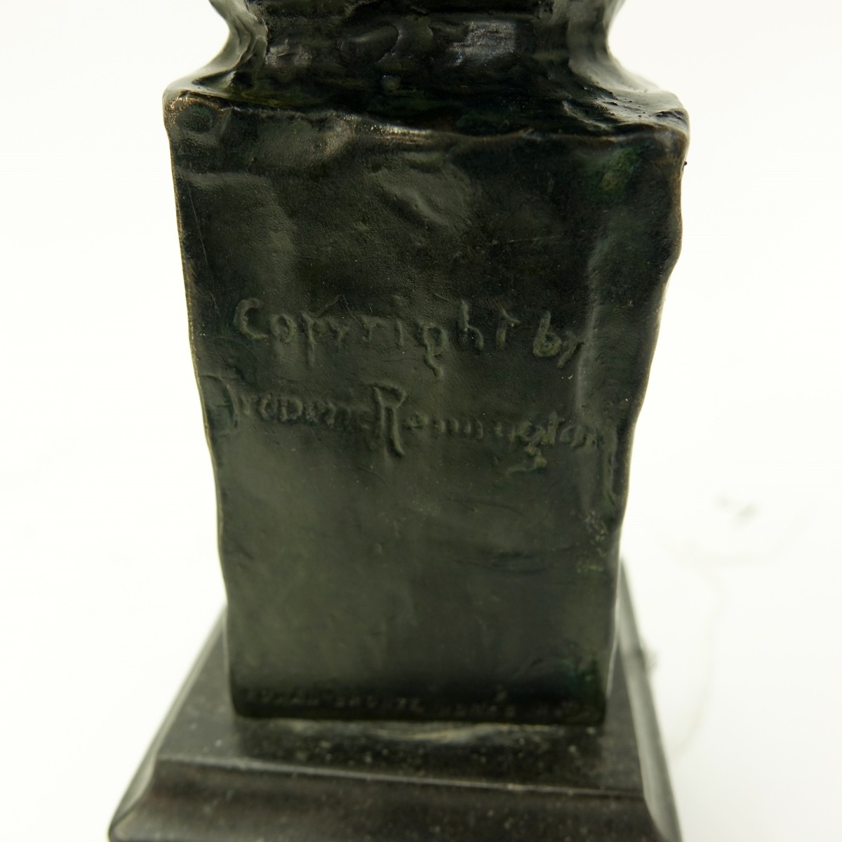 Frederic Remington, American (1861 -1909) Patinated Bronze Sculpture Mounted on Marble Base “The Sergeant” Signed "Frederic Remington" on the Side Panel, Marked "Copyright by Frederic Remington" and "Roman Bronze NY" foundry mark on Obverse Side. Measures 12- 1/4" H x 5-1/2" W (with Base), sculpture measures 10-1/4" H. Condition: Good condition Estimate: $3000.00 - $5000.00 Domestic Shipping: Third party