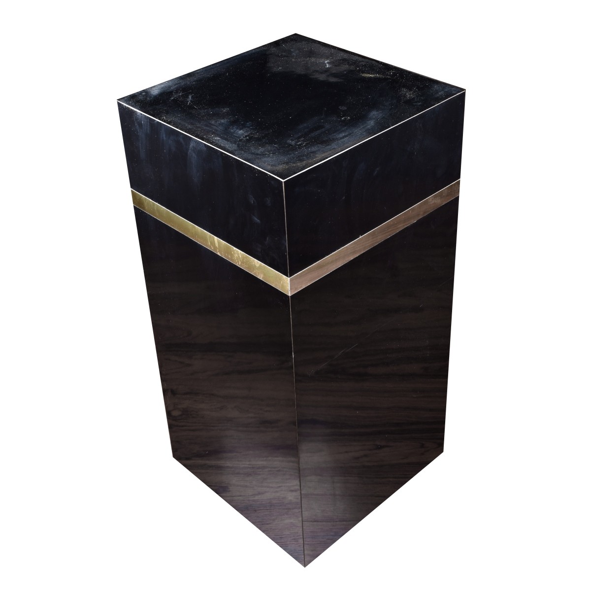 Black Laminate Pedestal with Silver Band accent. Measures 24 " H x 11-3/4 " W Condition: Good condition. Light scratching to top and sides. Estimate: $50.00 - $100.00 Domestic Shipping: Third Party