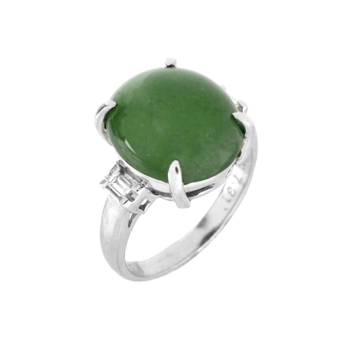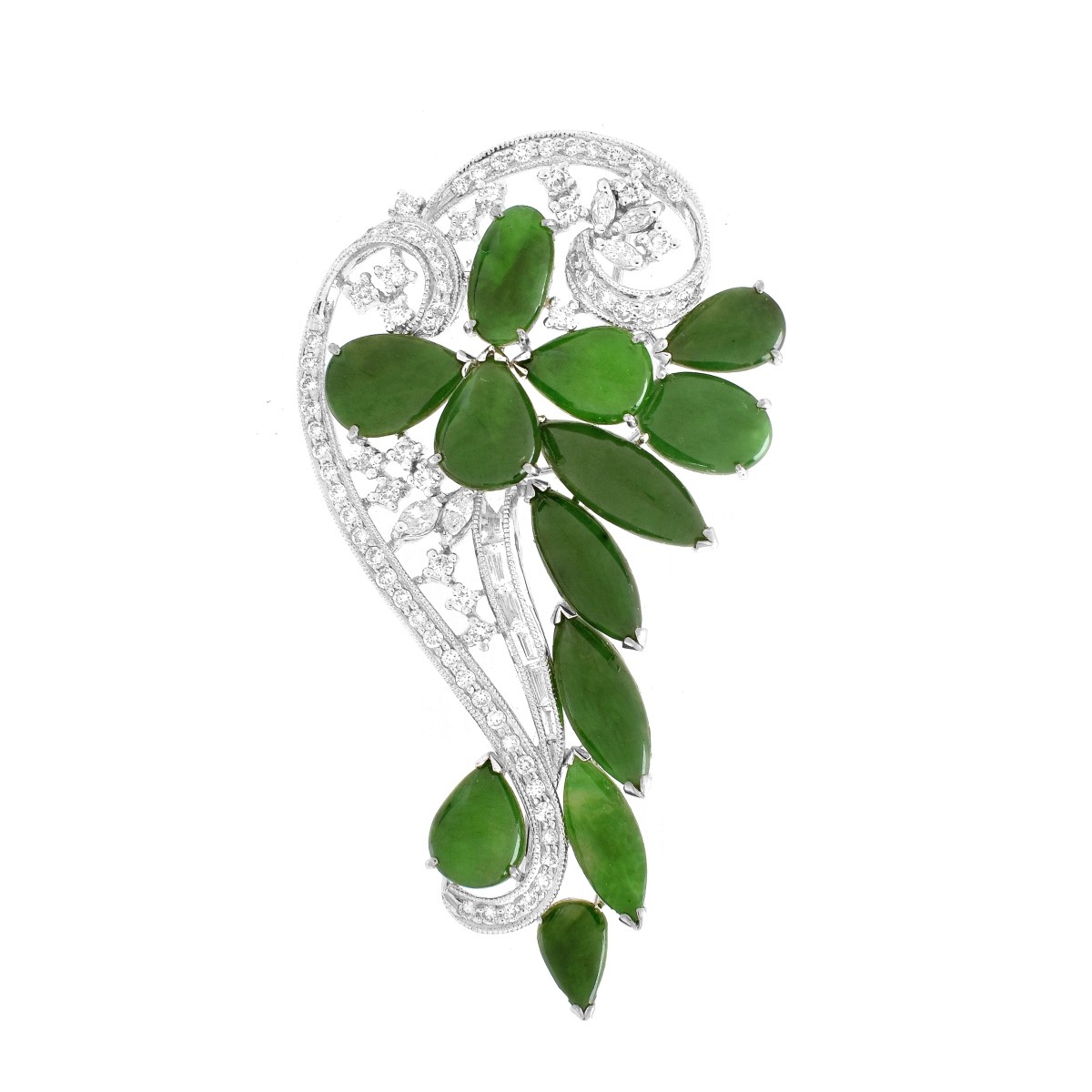 GIA Jadeite Jade, Diamond and 18K Brooch