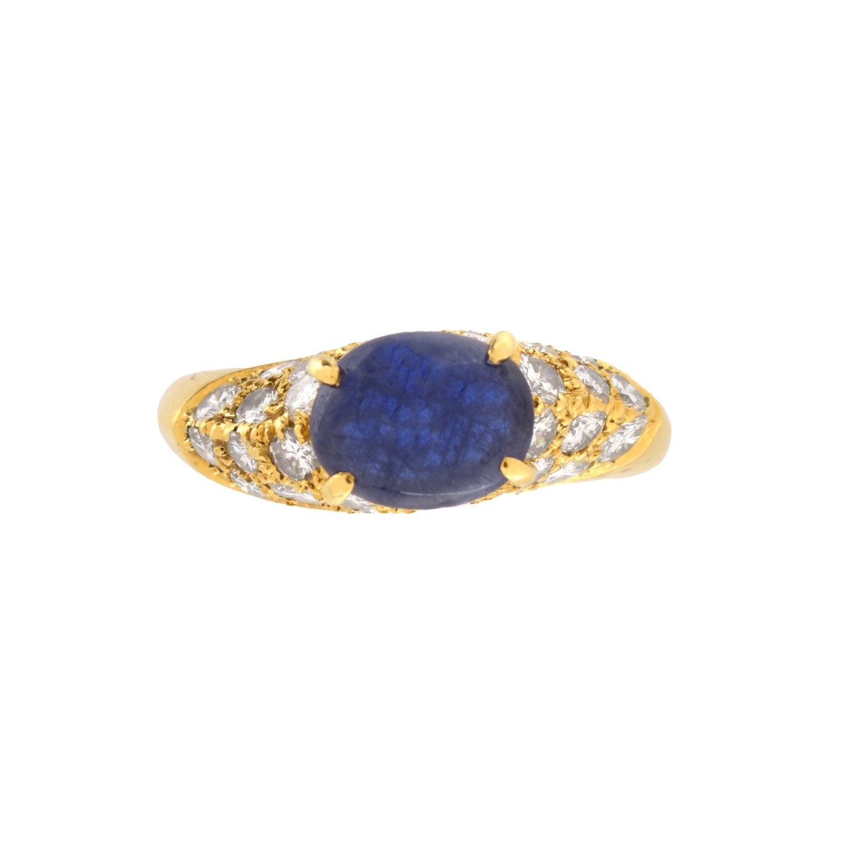 GIA Certified Oval Cut No Heat Sapphire, Pave Set Round Brilliant Cut Diamond and 18 Karat Yellow Gold Ring. Sapphire with vivid color. Diamonds F-G color, VS clarity. Bears VC&A mark. Ring size 6. Approx. weight: 5.1 grams. GIA Report 5172939804 dated 11/4/2016 to accompany this Lot. Condition: Light surface wear from normal use. Please see GIA Report for further information. Estimate: $2000.00 - $3000.00 Domestic Shipping: $30.00