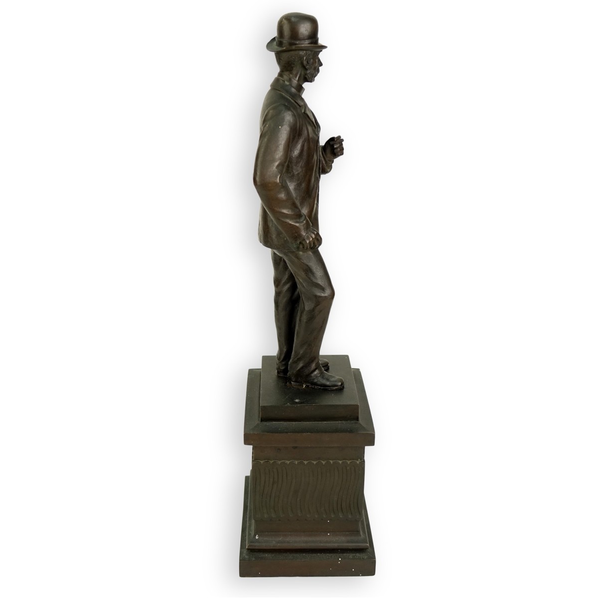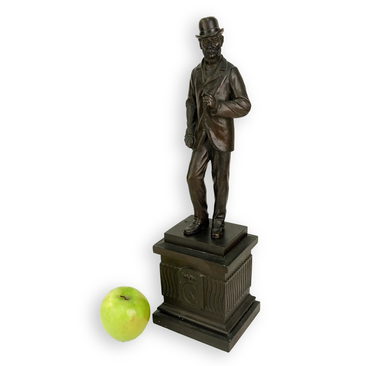 August Hassel Denmark (1864-1942) Bronze patinated sculpture depicting King Christian IX of Denmark on base with crowned monogram. Signed to back of base Augat Hassel 1906. Measures 18-1/2" H x 5-3/4" W Condition: Good condition, water spot to front of pedestal, missing Estimate: $150.00 - $250.00 Domestic Shipping: $88.00
