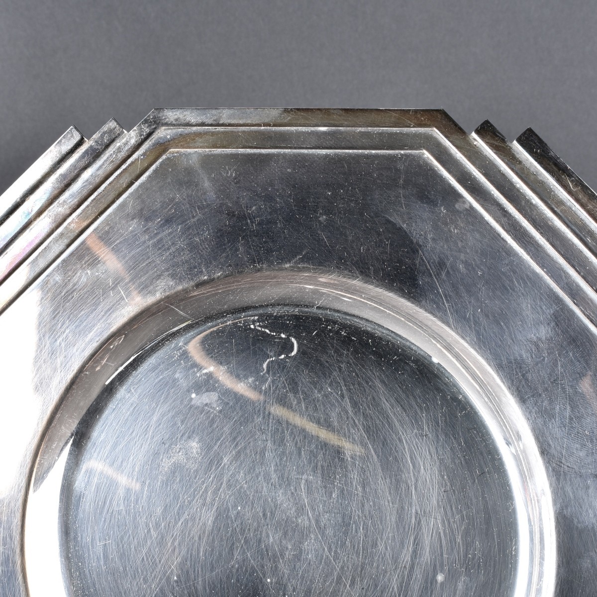 Set of Twelve (12) Laslo for Towle Silver Plate Chargers. Marked on the base. Measures 13' squared. Condition: Needs cleaning Estimate: $50.00 - $150.00 Domestic Shipping: $78.00
