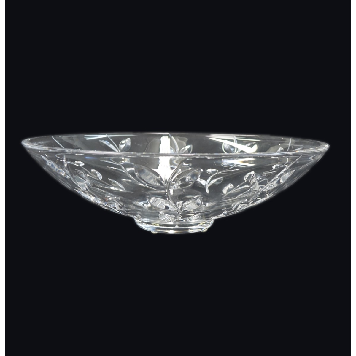 Tiffany & Co. "Floral Vine" Crystal Round Bowl, signed acid etched. Measures 3-3/4" H x 12" Diameter Condition: Good condition, light scratch to inside bottom of bowl. Estimate: $50.00 - $150.00 Domestic Shipping: $68.00
