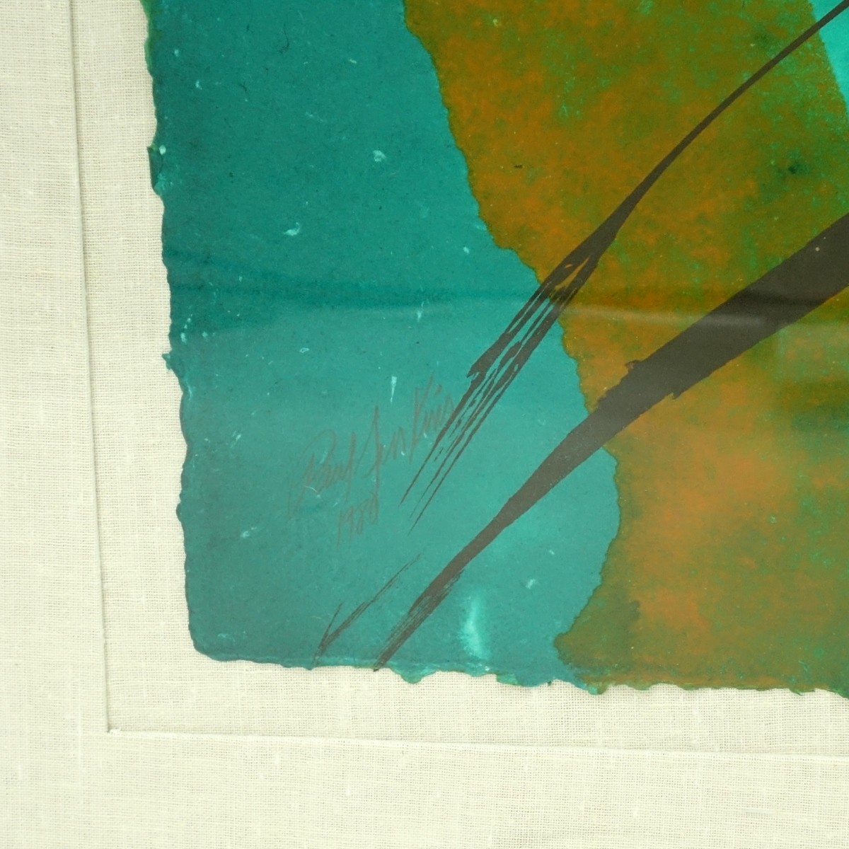 Paul Jenkins, American (1923 - 2012) Watercolor on Paper "Phenomena Series" Signed and Dated 1980 Lower Left. Tag attached to frame. Sheet measures 48" H x 32-1/2" W, frame measures 59-3/4" H x 44-3/4" W. Condition: Good condition Estimate: $6000.00 - $8000.00 Domestic Shipping: Third party Relist: up rlst #45 1/22/20 AS