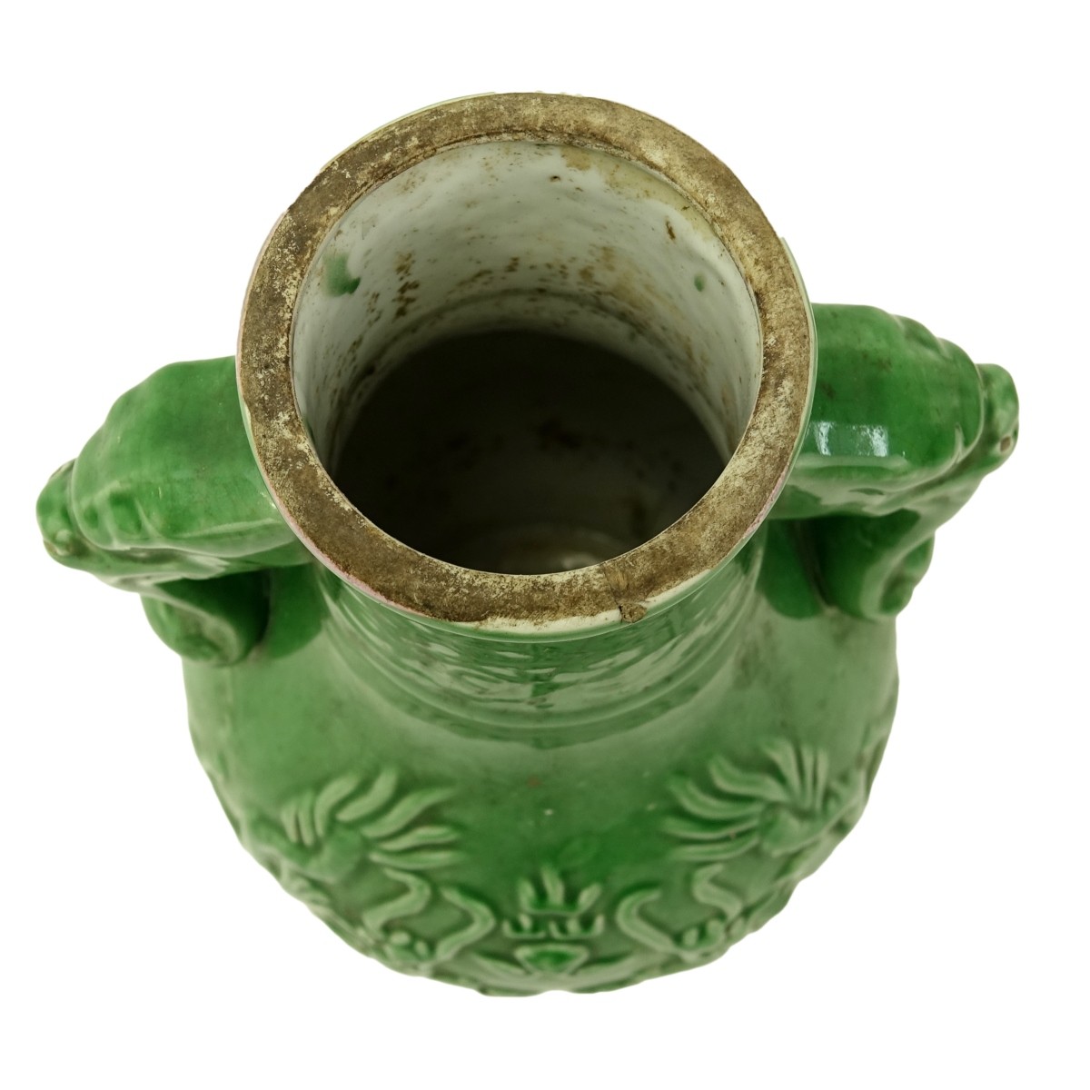 Modern Chinese Glazed Porcelain Vase with Handles. Unsigned. Measures 11-5/8" H x 7" W. Condition: Hairline crack to the rim otherwise good condition Estimate: $50.00 - $150.00 Domestic Shipping: $72.00