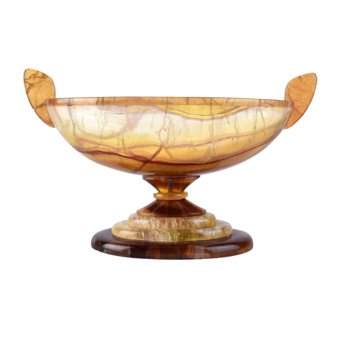 Vintage Gemstone Compote. Unsigned. Measures 5-3/4" H x 9-1/4" W. Condition: Restoration to one handle Estimate: $100.00 - $150.00 Domestic Shipping: $66.00