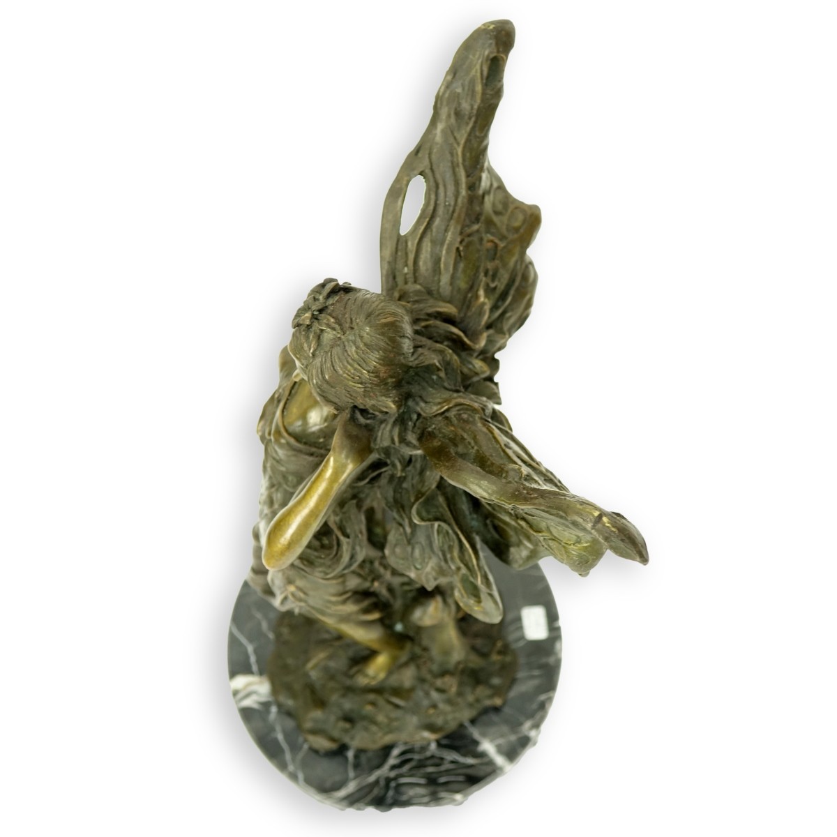 Edouard Drouot, French (1859 - 1945) Bronze Sculpture on Marble Base "Standing Winged Young Beauty" Signed on Obverse Side. Measures 15" H x 7-1/2" W, overall measures 16" H x 8" W. Condition: Rubbing to surface Estimate: $500.00 - $700.00 Domestic Shipping: Third party