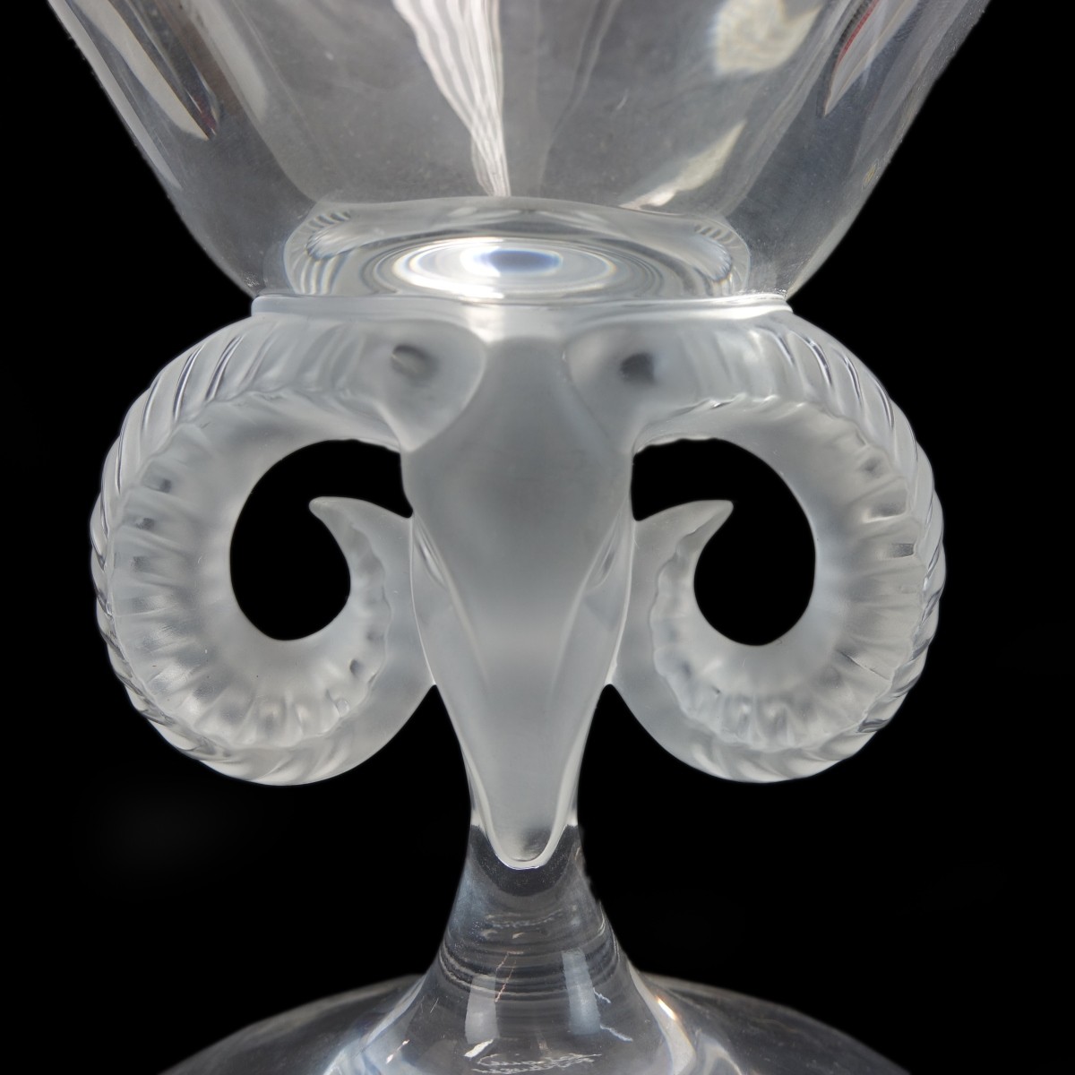 20th Century Lalique France "Aries" Frosted and Clear Glass Footed Compote, etched signature to bottom Condition: Good condition, I feel nor see any chips, but most likely has normal wear for a pre owned items Estimate: $150.00 - $250.00 Domestic Shipping: $78,00