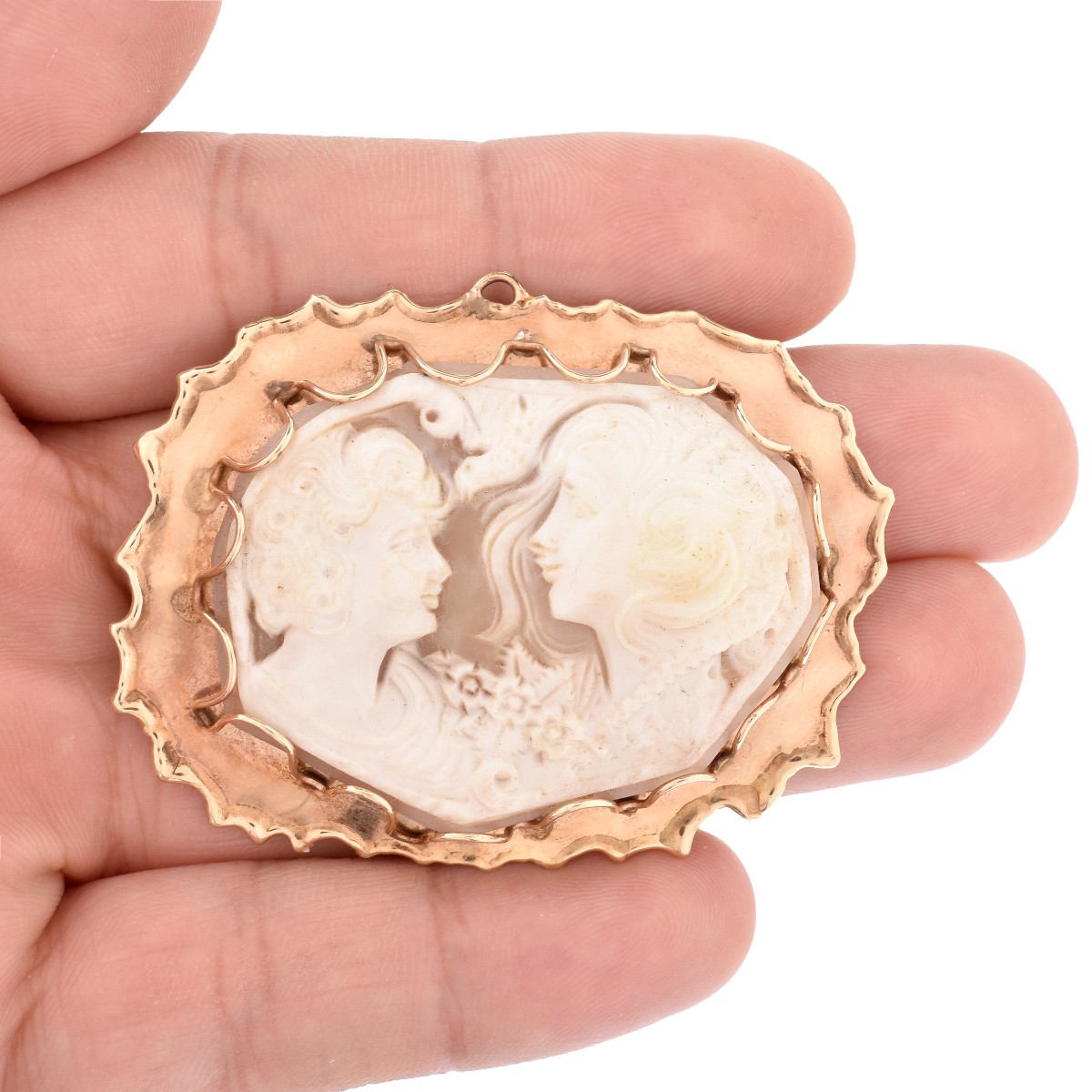 Vintage Carved Shell and 14K Cameo Brooch