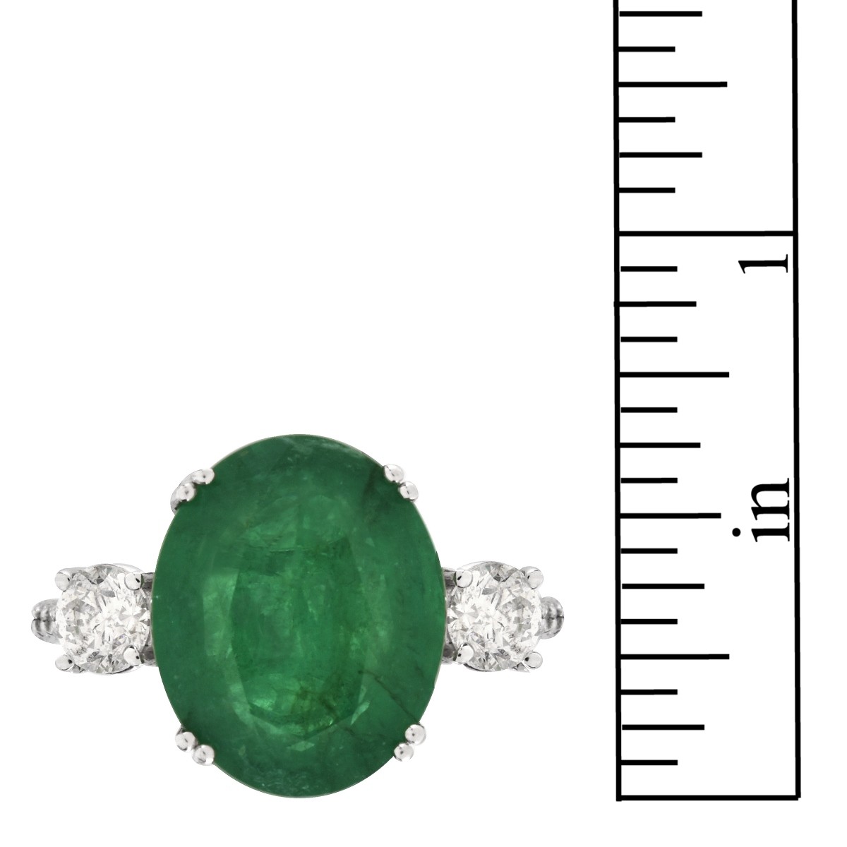 AGL Certified 7.84 Carat Oval Cut Natural Brazilian Emerald, Approx. .80 Carat TW Round Brilliant Cut Diamond and 14 Karat White Gold Ring. Emerald with vivid color. Diamonds E-F color, VS-SI clarity. Approx. weight: 6.7 grams. Ring size 7. AGL Report 1085545 dated 7/25/2017 to accompany this Lot. Condition: Very good condition. Estimate: $8000.00 - $10000.00 Domestic Shipping: $32.00