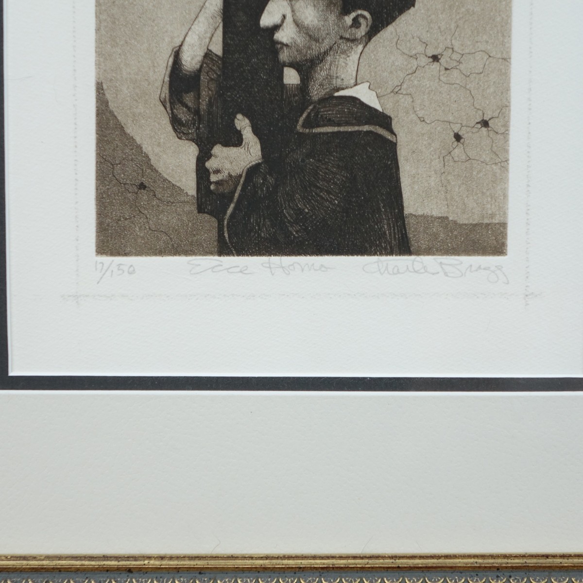 2 Charles Bragg (American 1931-2017) Etchings with aquatint, both pencil signed lower right "THE CONDUCTOR" (silence) number 51/100 measures sight 4" H x 5" W frame12-3/8" H x 13-1/2" W. "ECCE HOMO" pencil numbered 17/150 measures sight 8-3/4" H x 6" W frame 19-1/2 " x 16" W Condition: Good condition, wear consistent with age and history. Estimate: $100.00 - $200.00 Domestic Shipping: $92.00