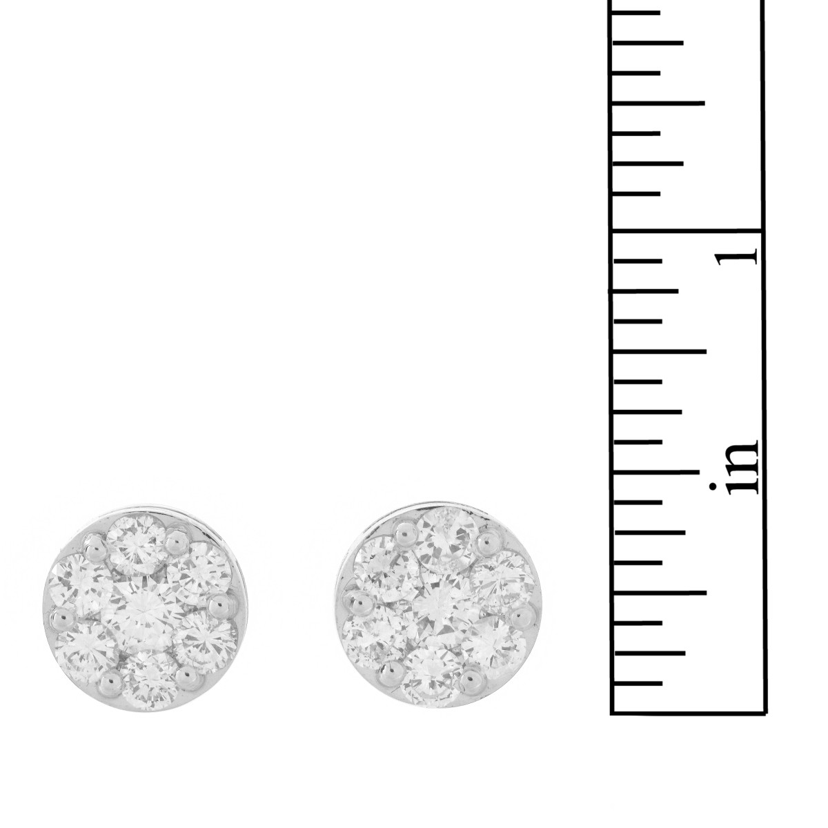 Approx. 2.70 Carat TW Fourteen Round Brilliant Cut Diamond and 14 Karat White Gold Cluster Ear Studs. Diamonds G color, VS clarity. Measure 3/8" diameter. Stamped 14K. Approx. weight: 5.3 grams. Condition: Very good condition. Estimate: $3000.00 - $4000.00 Domestic Shipping: $30.00