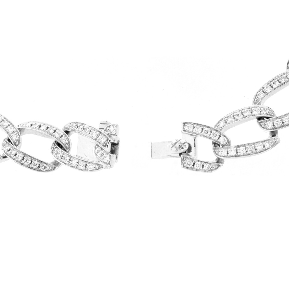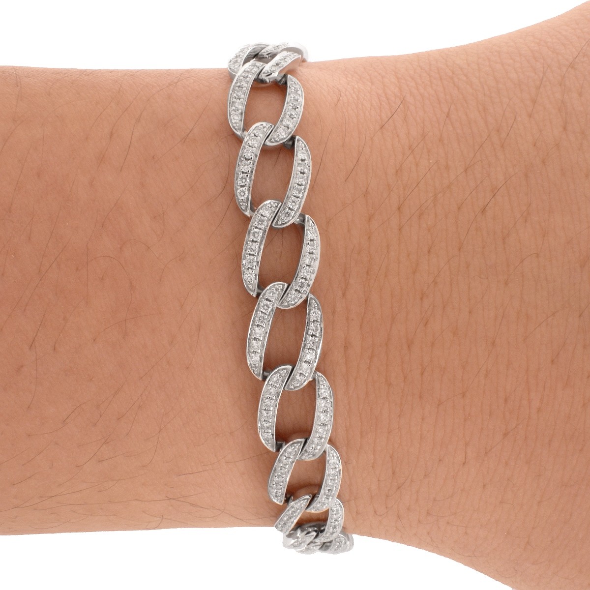 Approx. 3.0 Carat TW Pave Set Round Brilliant Cut Diamond and 18 Karat White Gold Link Bracelet. Diamonds G-H color, VS clarity. Stamped 18K. measures 7-1/4" L, 1/4" W. Approx. weight: 20.3 grams. Condition: Very good condition. Estimate: $2500.00 - $3500.00 Domestic Shipping: $30.00
