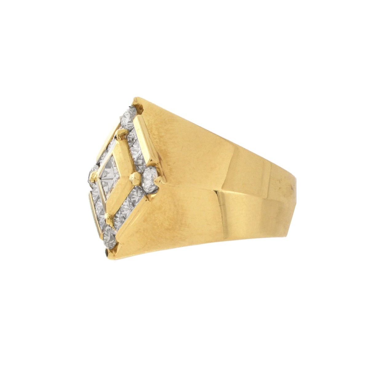 Man's Approx. 2.0-2.20 Carat Princess Cut Diamond and 14 Karat Yellow Gold Ring. Diamonds F-G color, VS1-VS2 clarity. Stamped 14K. Ring size 9. Approx. weight: 15.0 grams. Condition: Very good condition. Estimate: $400.00 - $600.00 Domestic Shipping: $28.00