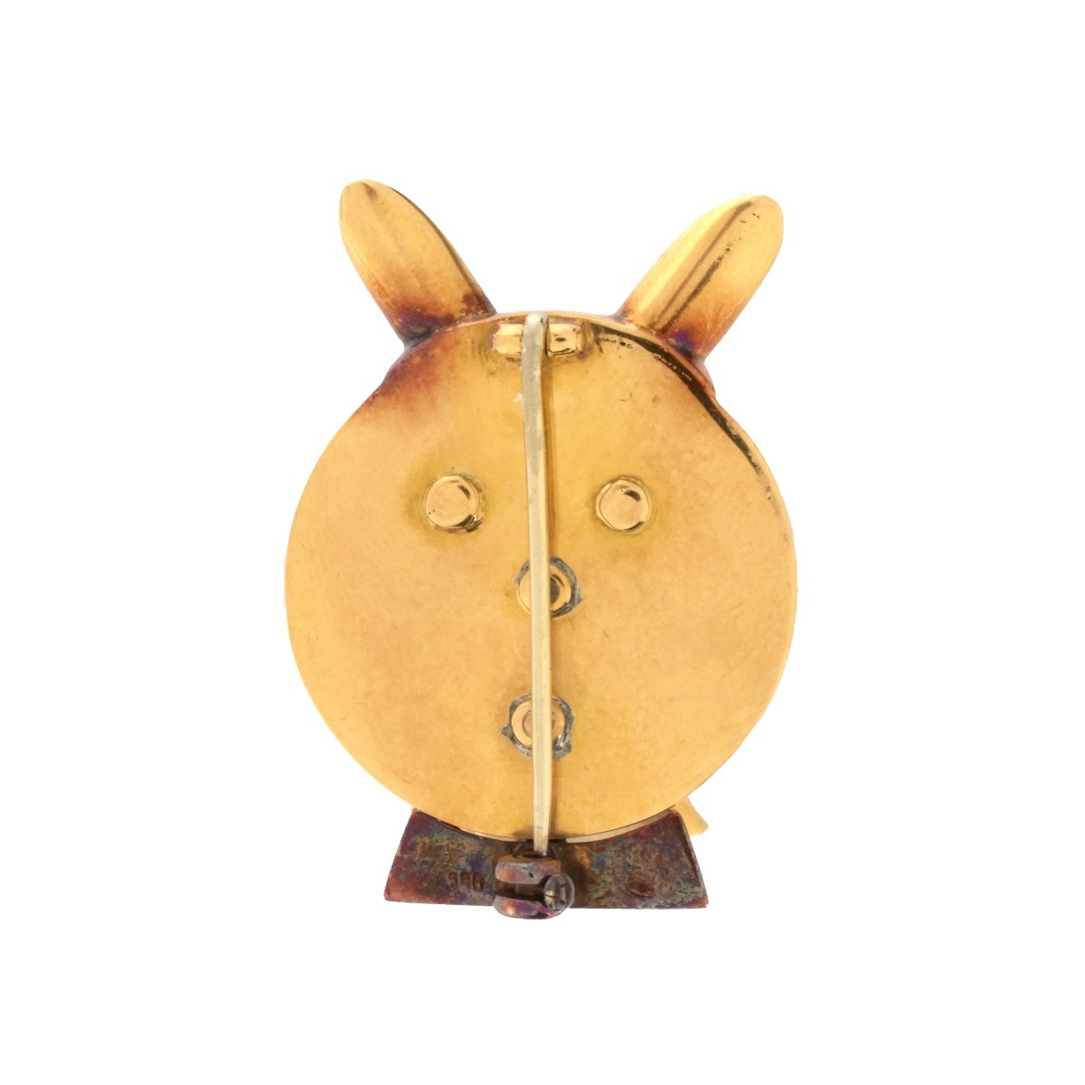 Vintage Tiger Eye and 18 Karat Yellow Gold Cat Pin with Diamond Eyes. Stamped 750. Measures 1-1/2" H, 1" W. Approx. weight: 29.0 grams. Condition: Very good vintage condition. Estimate: $200.00 - $400.00 Domestic Shipping: $28.00