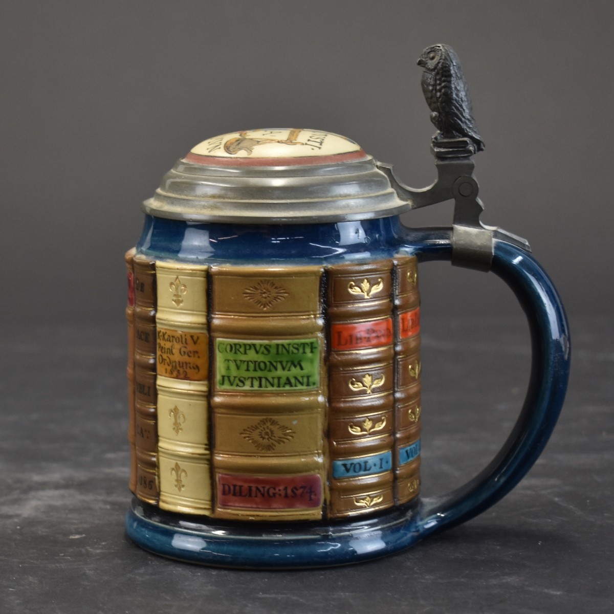 1/2 Liter Mettlach German Hand Painted Glazed Porcelain Beer Stein. Signed and numbered on the bottom side. Measures 6-3/4" H x 6' W. Condition: Good condition Estimate: $200.00 - $400.00 Domestic Shipping: $48.00