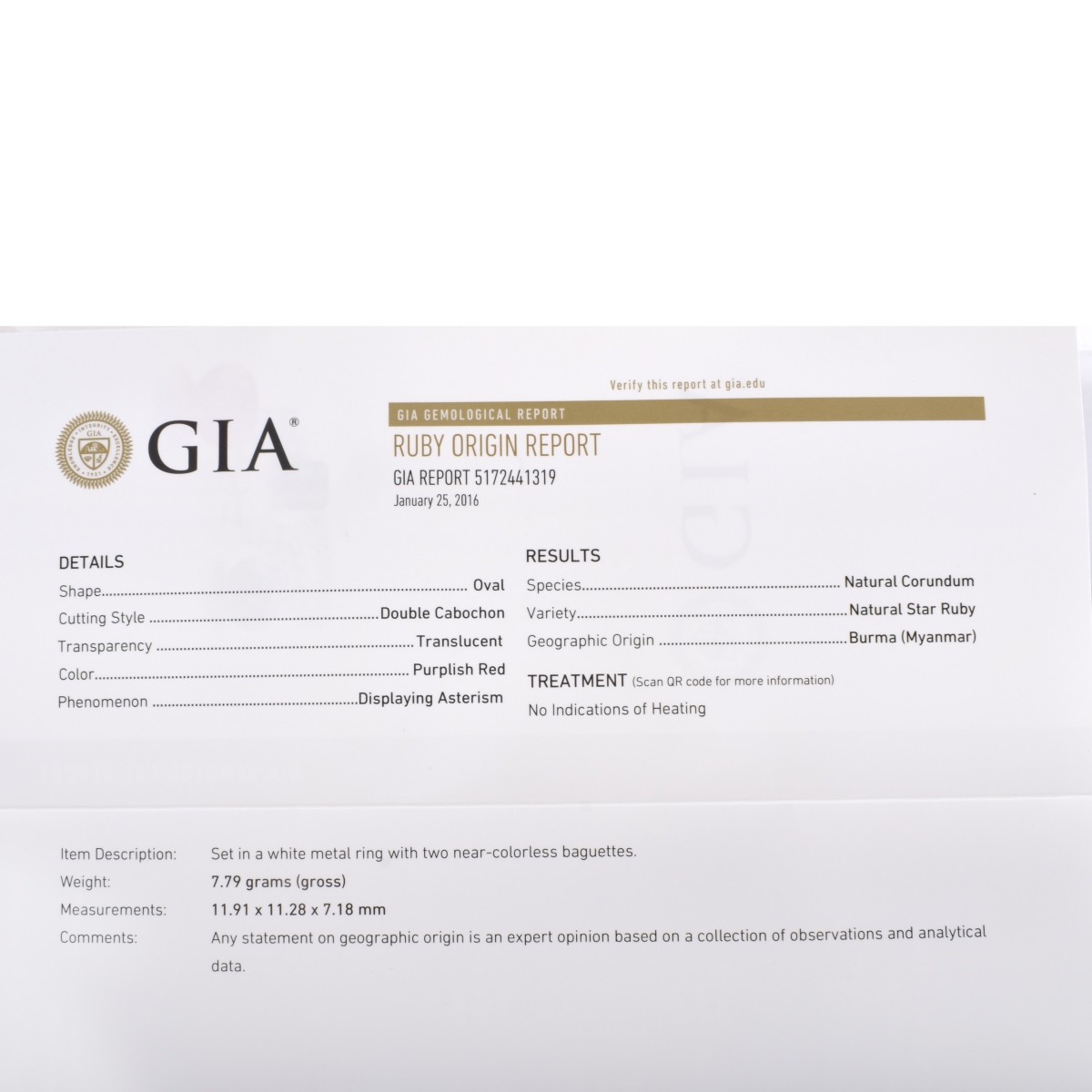 Item Condition: Very good condition. Please see GIA Report for further information.
