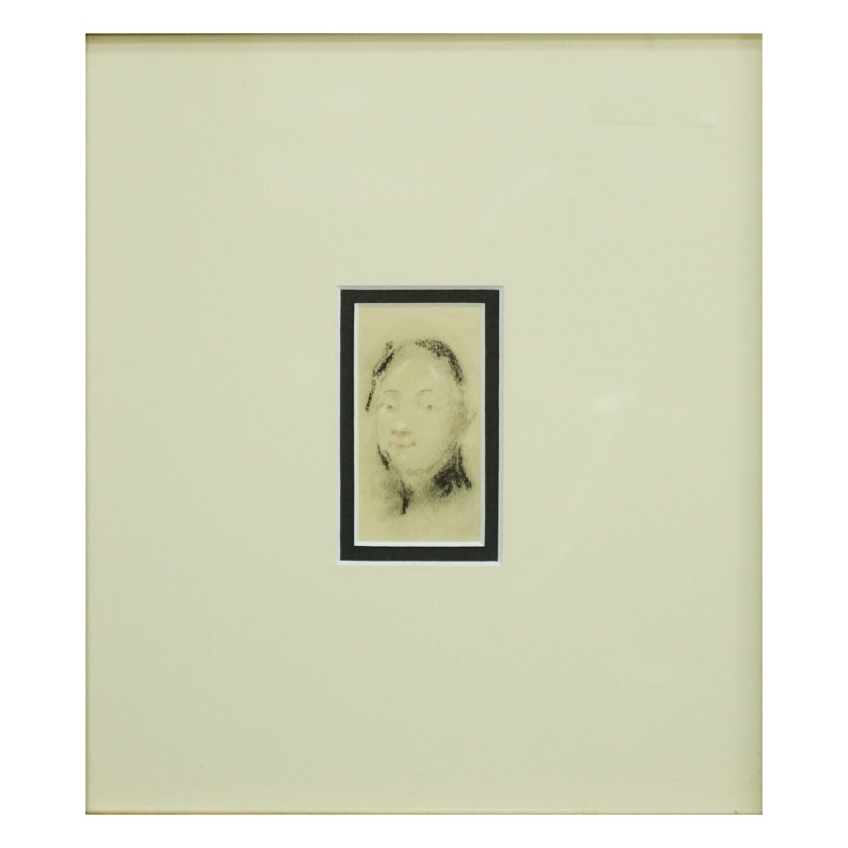 Possibly Antonio Mancini, Italian (1852-1930) Charcoal and Colored Pastels Sketch "Portrait Of A Young Lady". Sketch of flowers in red pastel en verso. Unsigned. Measures 3-1/4" x 1-7/8" (sight), frame measures 17-1/4" x 15-3/4". Condition: Good condition. Estimate: $50.00 - $150.00 Domestic Shipping: $88.00