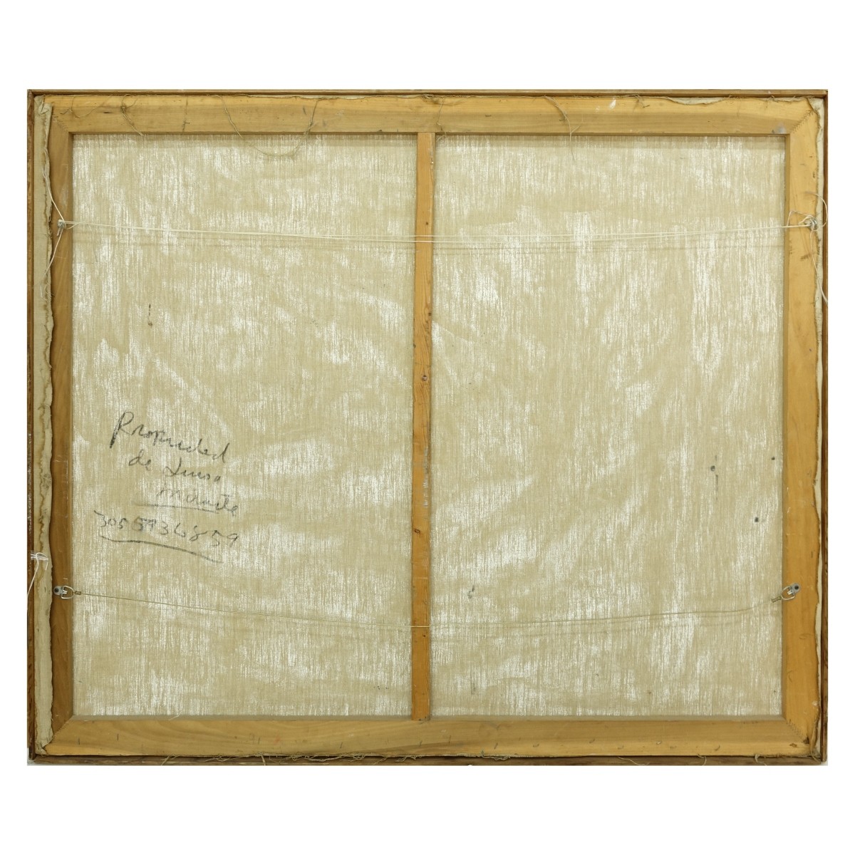 Modern 20th Century Oil on Canvas Lovers on White Horse and Cherub shooting arrows. Signed lower right Illegible U. Fabvo' - Fabro' 2005 La Entrega total. Measures 47-3/4" H x 59-1/2" W. ' h x Condition: Good condition. Estimate: $150.00 - $300.00 Domestic Shipping: Third Party