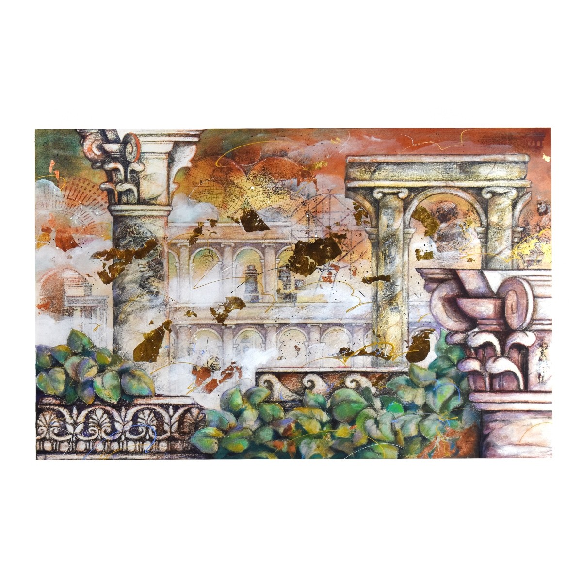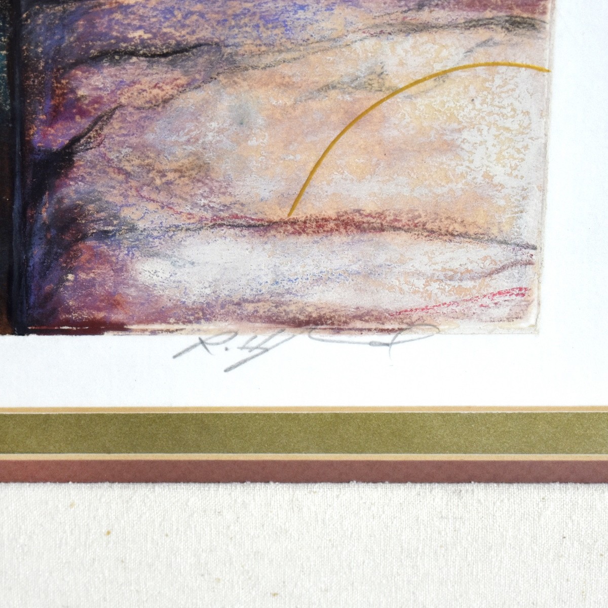 Large 20th Century Modern Lithograph with Gold Leaf "Garden Waltz" Pencil Signed on Lower Margin. Measures 24" H x 36" W, frame measures 40-1/2" H x 52-1/2" W. Condition: Good condition Estimate: $50.00 - $150.00 Domestic Shipping: Third party