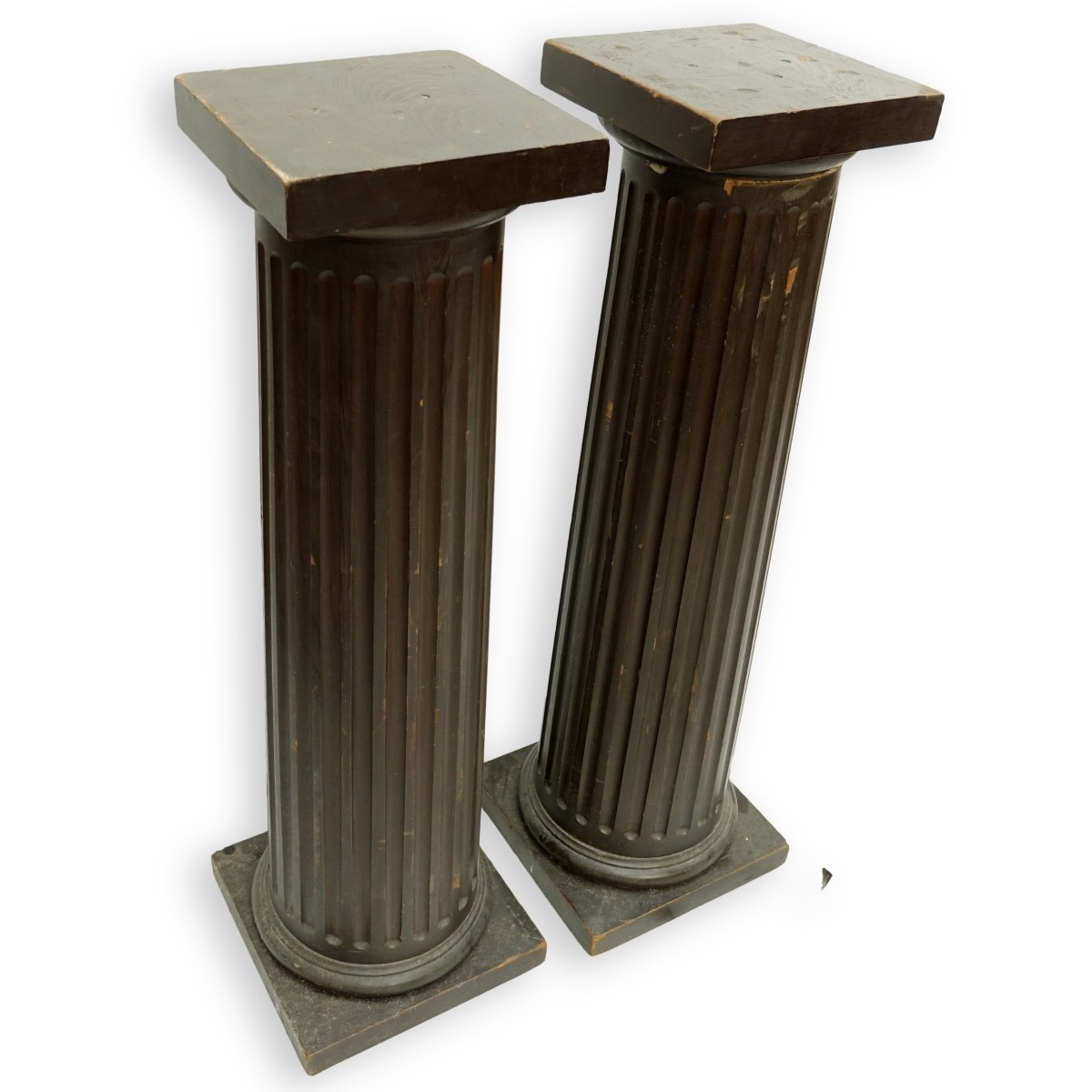 Pair of Mid Century Italian Polychrome Carved Wooden Column Pedestal. Tallest measures 41-1/2" H, top measure 10-1/2" square. Condition: Scratches and schips Estimate: $100.00 - $150.00 Domestic Shipping: Third party