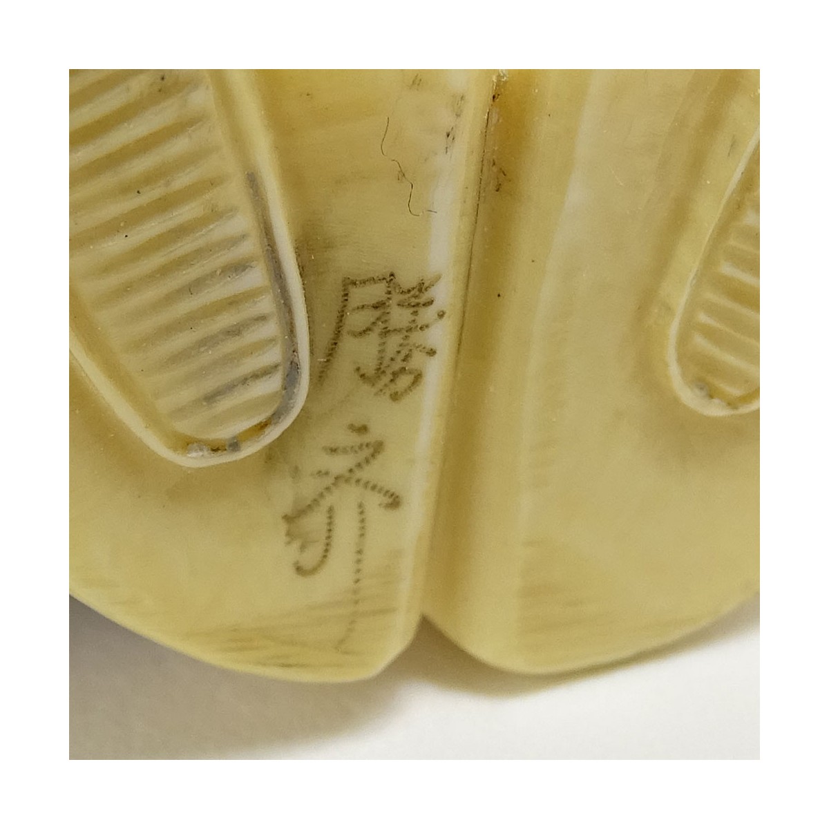 Grouping of Two (2) Antique Japanese Polychrome Carved Netsukes. Signed. Measures 2". We Will Not Ship This Item Out of State of Florida. Anyone Having This Item Shipped Must Have a Florida Address or the Item will not be Shipped. We will Not Knowingly Sell Endangered Species outside of Legal Channels. Condition: Small losses and rubbing to the surface Estimate: $50.00 - $150.00 Domestic Shipping: $28.00