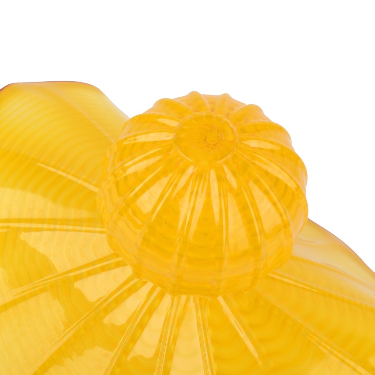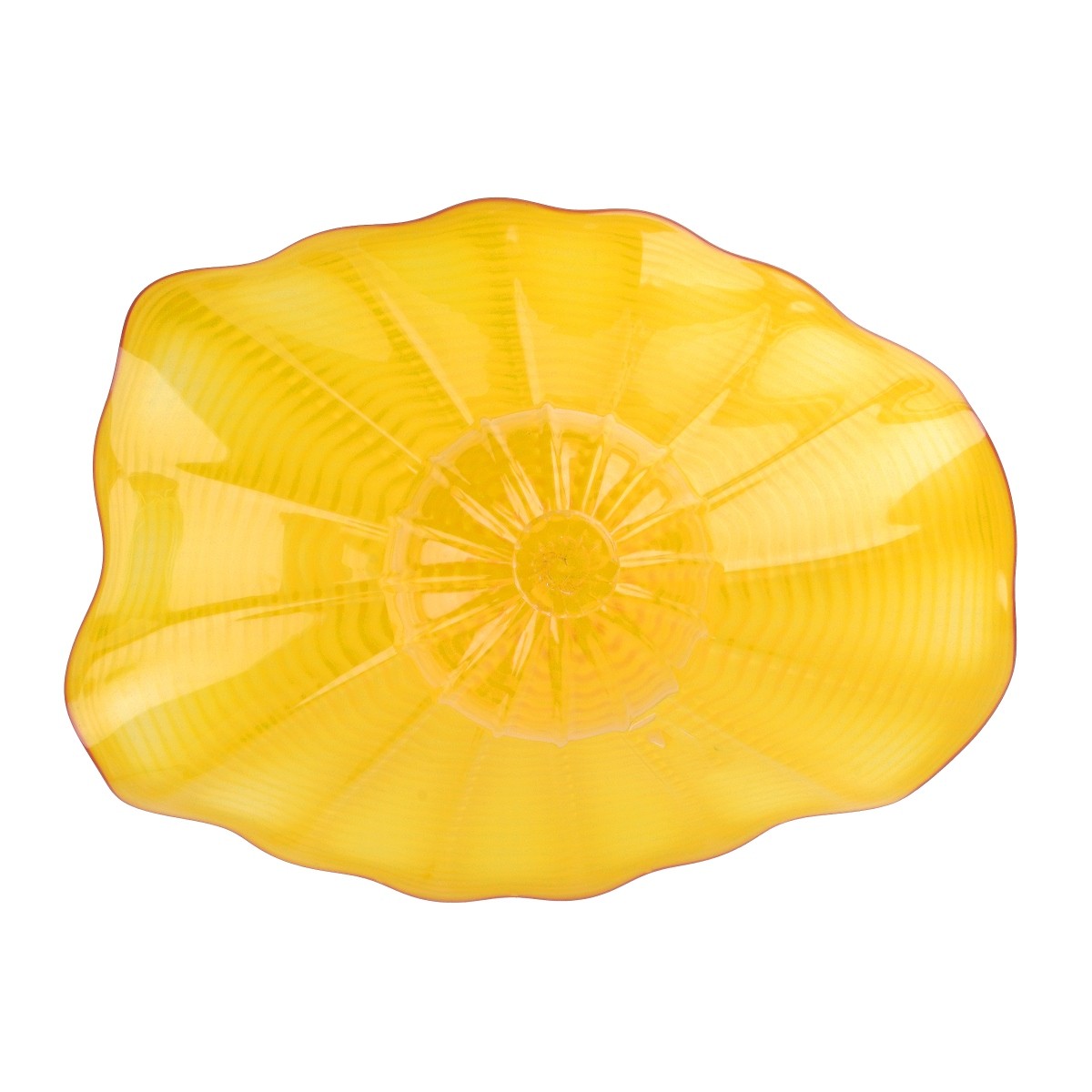 Dale Chihuly, American (Born 1941) Ornate Hand Blown Glass Centerpiece Sculpture, Buttercup Yellow Persian with Red Colored Trim, Signed Chihuly PP97 on Obverse Side. Lot includes a presentation case. Sculpture measures 8-1/2" x 12-1/2" x 10-1/2". Case measures 13-7/8" H x 12-1/2" squared. Condition: Excellent condition Estimate: $2000.00 - $4000.00 Domestic Shipping: Third party