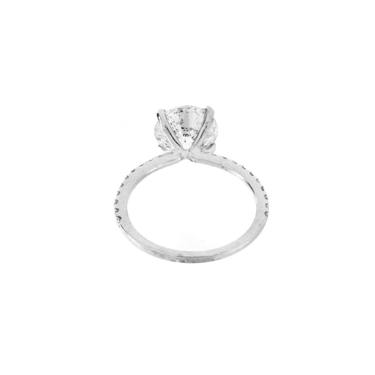 IGL Certified 2.68 Carat Round Brilliant Cut Diamond and 18 Karat White Gold Engagement Ring accented with .23 Carat TW Round Brilliant Cut Diamonds. Center diamond D color, SI2 clarity. Excellent Cut, Polish and Symmetry. Stamped 750 18K. Ring size 5-3/4. Approx. weight: 2.3 grams. IGL Report D90454836IL dated 3/19/2018 to accompany this Lot. Condition: Very good condition. Estimate: $12000.00 - $16000.00 Domestic Shipping: $30.00