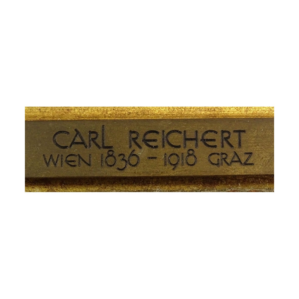 Carl Reichert, Austrian (1836-1918) Oil on Board "Spaniel and Dachshund". Signed Lower Right C. Reichert. Tag affixed to the frame. Artists Bio in German Affixed to Back. Measures 10" H x 13-1/2" W, frame Measures 16-1/2" H x 19-3/4" W. Condition: Two tiny dings upper Center or in Good Condition Estimate: $6000.00 - $8000.00 Domestic Shipping: $125.00