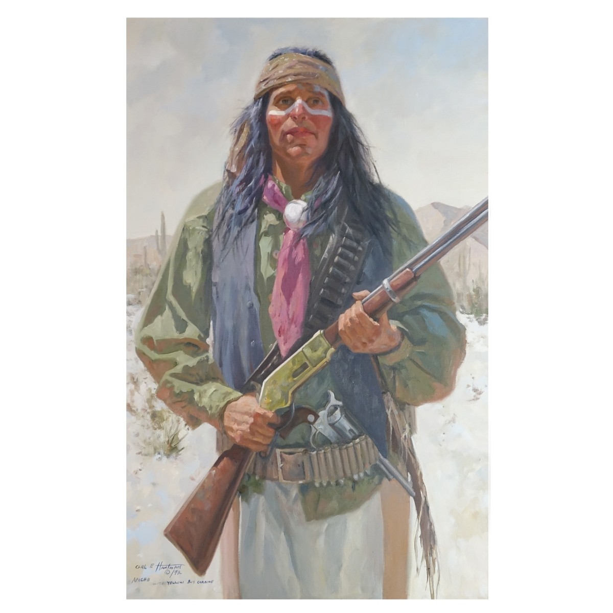 Carl Hantman (American b. 1935) 1992 Oil on Canvas, "Apache with Yellow Boy Carbine". Signed, dated and titled lower left. Artist framed. Measures 36" H, 24" W; frame measures 46" H, 33-3/4" W. Condition: Very good condition. Estimate: $800.00 - $1200.00 Domestic Shipping: Third Party