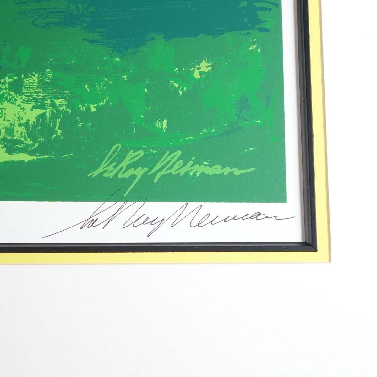 After: LeRoy Neiman, American (1921 - 2012) Colored Silkscreen Print "Clubhouse at Old St. Andrew's" Signed in the Plate and Lower Right. Measures 21" H x 28" W, frame measures 37" H x 43-1/4" W. Condition: Good condition Estimate: $100.00 - $200.00 Domestic Shipping: $165.00