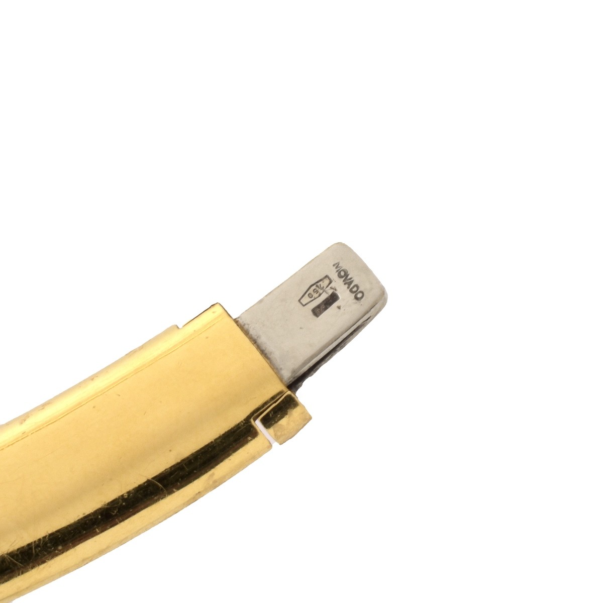 Vintage 18 Karat Yellow Gold Elongated Link Necklace Accented with Pave Set Round Brilliant Cut Diamonds. Diamonds F-G color, VS1-VS2 clarity. Signed Movado, stamped 750. Measures 17" L, 3/8" W. Approx. weight: 51.3 dwt. Condition: Very good vintage condition. Slight surface wear from normal use. Estimate: $3000.00 - $5000.00 Domestic Shipping: $32.00