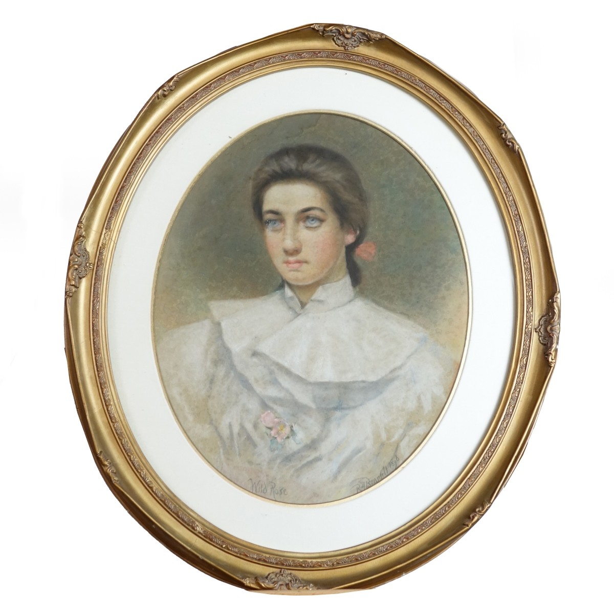 Antique Pastel on Paper "Wild Rose" Signed and Dated 1896 Lower Right. Sight measures 18-3/4" H x 14-3/4" W, frame measures 27-3/8" H x 23-1/4" W. Condition: Good condition Estimate: $100.00 - $200.00 Domestic Shipping: $145.00