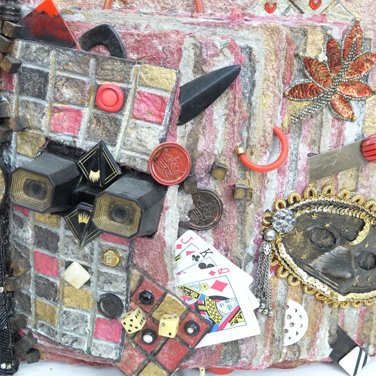 Colleen Barry Wilson (Born 1951) Mixed Media Assemblage "Mixed Composition" Signed and Dated 1989. Measures 15" H x 35" W. Condition: Good condition Estimate: $50.00 - $150.00 Domestic Shipping: Third party