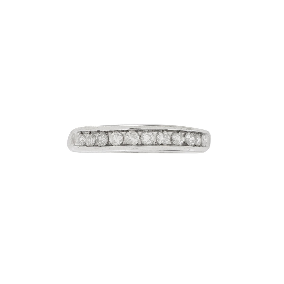 Vintage Italian Eleven Small Round Brilliant Cut Diamond and 10 Karat White Gold Ring / Band. Stamped 10K, Italian hallmark. Ring size 8-3/4. Approx. weight: 2.62 grams. Condition: Very good vintage pre-owned condition. Estimate: $200.00 - $400.00 Domestic Shipping: $28.00