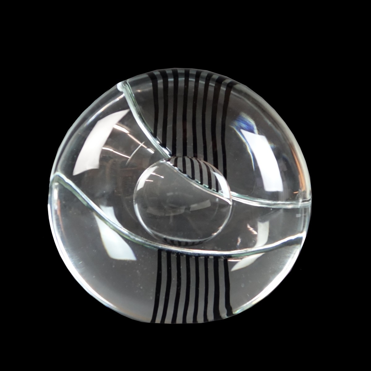 Murano Seguso Arte Vetro Art Glass Orb Sculpture. Signed by Livio Segusso and inscribed on the bottom side. Measures 9" x 8-1/2". Condition: Minor scuff to the base from display, good condition Estimate: $300.00 - $600.00 Domestic Shipping: $88.00