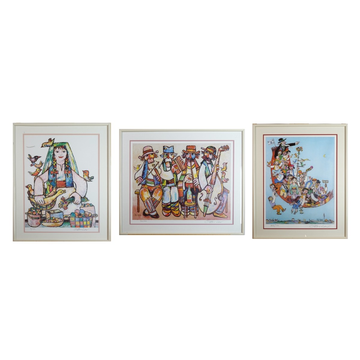Lot of Three (3) Jovan Obican (1918 - 1986) Color Lithograph Prints on Paper "Judaic Figural Scenes" Each Pencil Signed and Numbered on Lower Margin. Two are signed in the plate. Various size frames with the largest measuring 27" x 33", smallest measures 32-1/4" x 25". Condition: Good condition Estimate: $50.00 - $150.00 Domestic Shipping: Third party