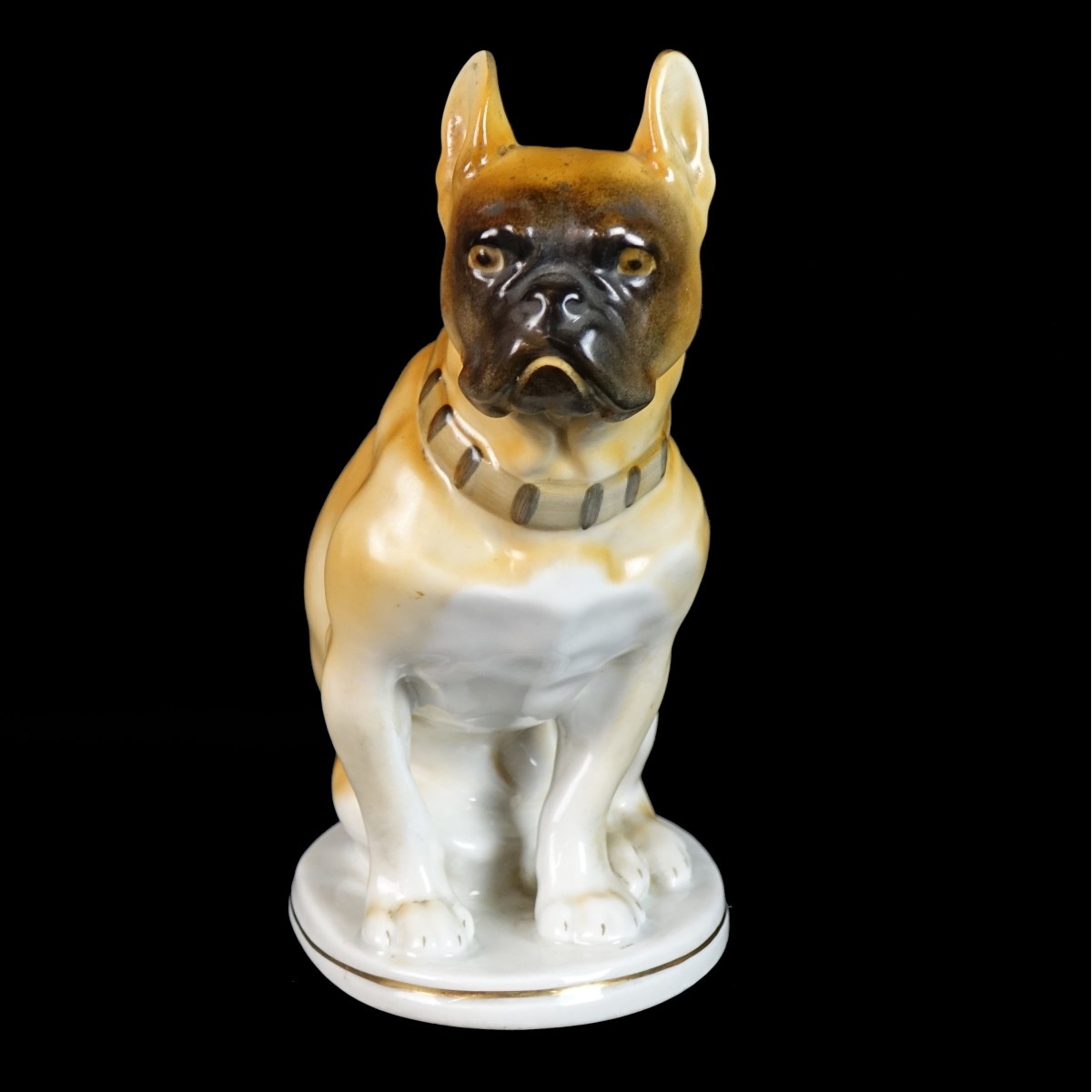 Imperial Porcelain Factory Figure of a Seated Dog. Lomonosov mark on the bottom side. Measures 8-1/2" H x 6-1/2" W. Condition: Good condition Estimate: $50.00 - $150.00 Domestic Shipping: $58.00