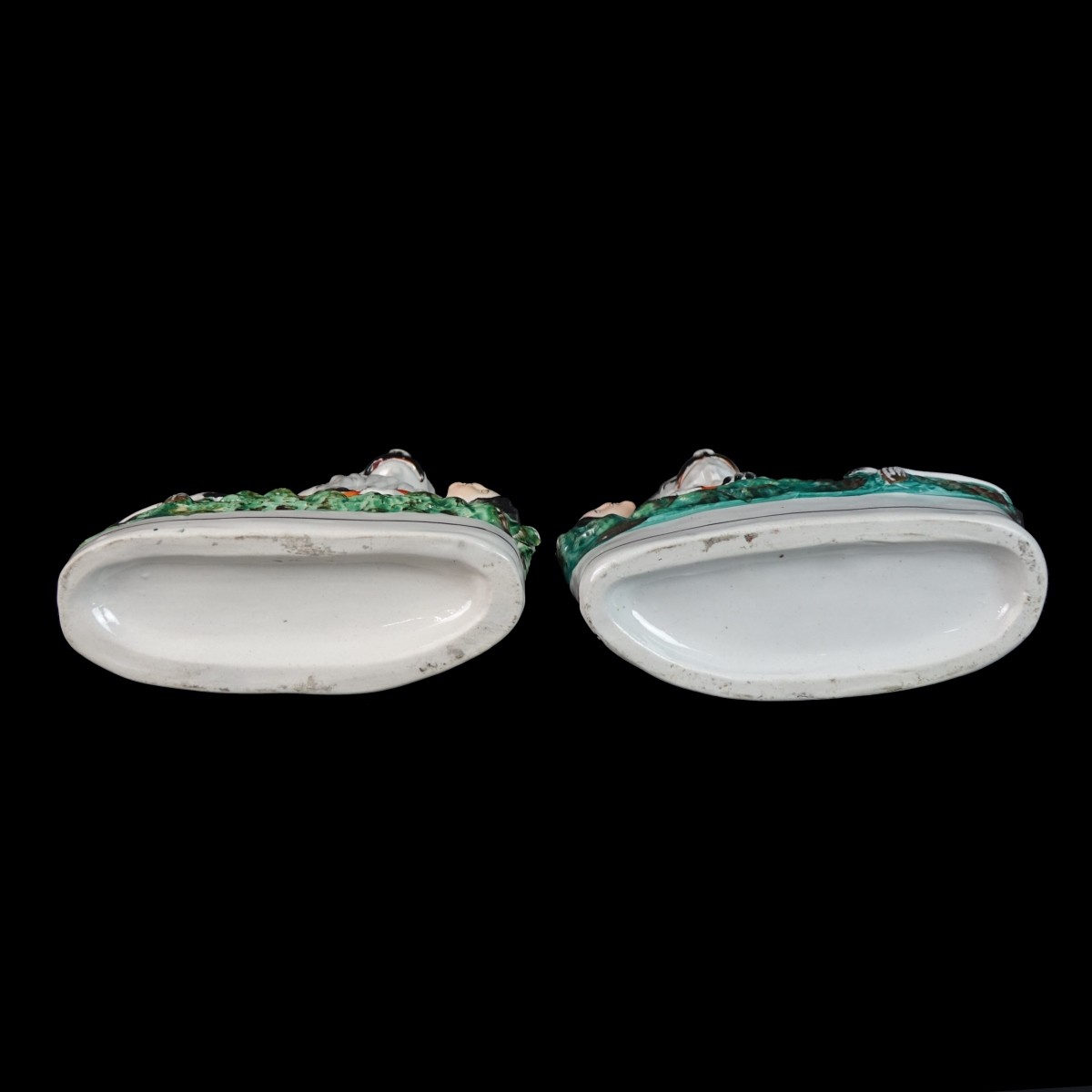 Pair of Antique Staffordshire Porcelain Lion and Napoleon Figures. Unsigned. Measures 9" H x 7-1/2" W. Condition: Crazing and rubbing otherwise good condition Estimate: $50.00 - $100.00 Domestic Shipping: $72.00