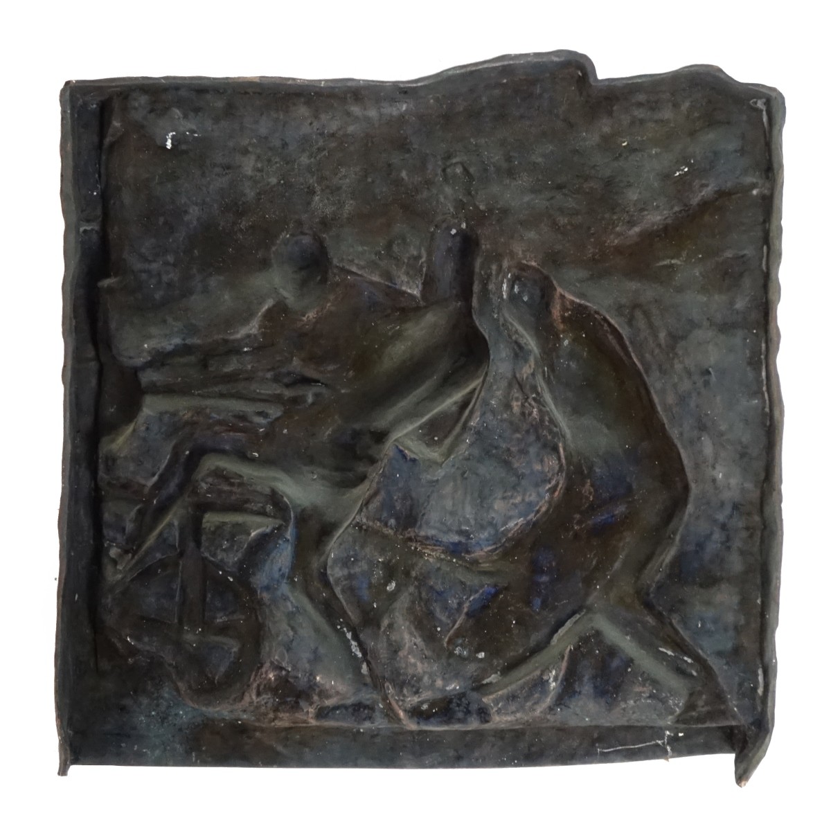 Constantin Emile Meunier, Dutch (1831 - 1905) Bronze Relief Sculpture "The Laborers" Signed Lower Right. Petermann Foundeur Bruxelles foundry. Measures 20" H x 19" W. Condition: Oxidation, patina has previously been cleaned otherwise good condition Estimate: $5000.00 - $7000.00 Domestic Shipping: Third party