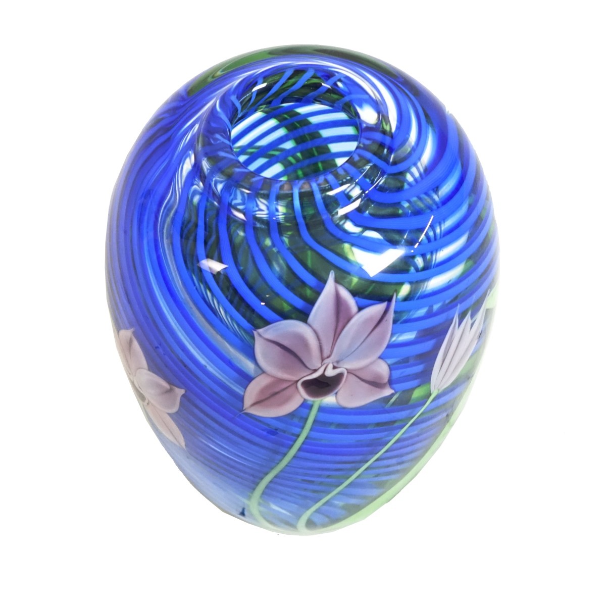 Orient and Flume Art Glass Paperweight Vase Signed L. Hudin. Dated and marks located on the bottom side, marked in cartouche on the surface. Measures 9-1/2" H x 6" W. Condition: Good condition Estimate: $200.00 - $400.00 Domestic Shipping: $76.00