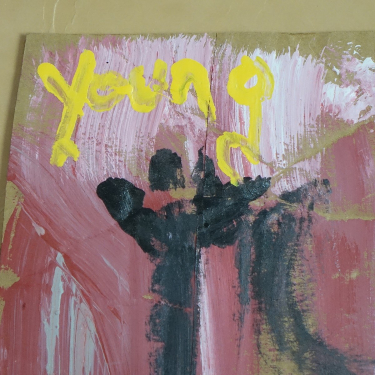 Purvis Young, American (1943 - 2010) Paint on Found Cardboard "Abstract Figural Composition" Signed Top Left Corner. Measures 18" H x 12" W, frame measures 21" H x 15-1/4" W. Condition: Good found condition Estimate: $400.00 - $600.00 Domestic Shipping: $115.00