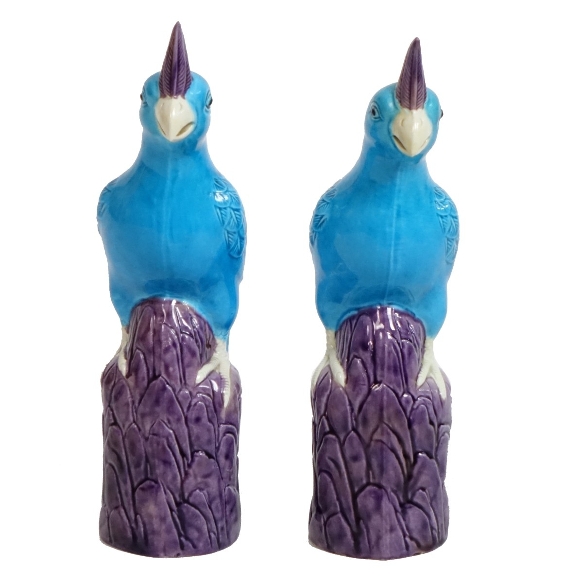 Pair of Modern Chinese Blue Glazed Porcelain Bird Figures. Unsigned. Measures 11-7/8" H. Provenance: The estate of Leon Amar, Palm Beach, Florida. Condition: Good condition Estimate: $50.00 - $150.00 Domestic Shipping: $68.00