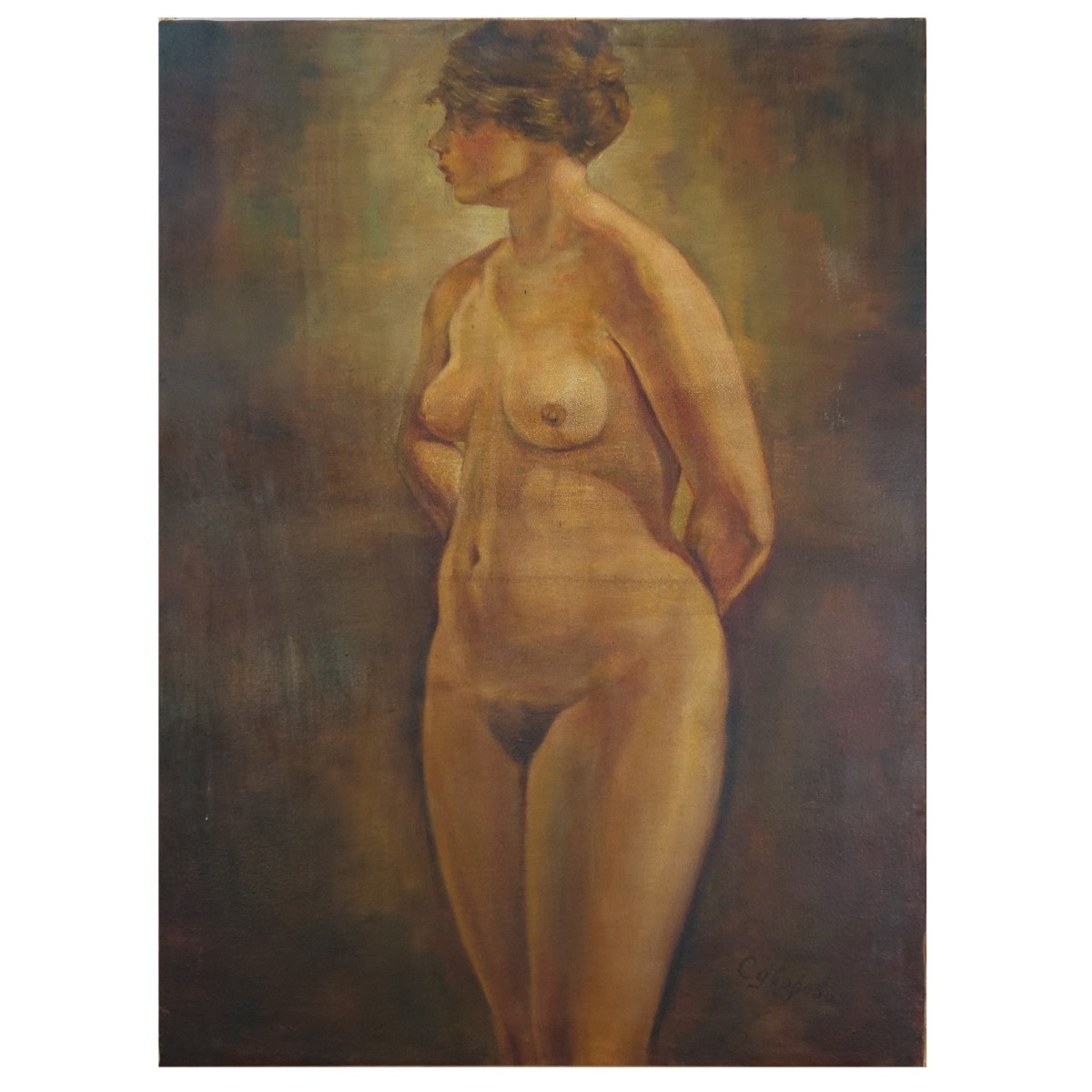 Russian School Oil on Canvas, Nude. Unsigned. Measures 32-1/4" H, 23-34" W. Condition: Good condition. Estimate: $600.00 - $1000.00 Domestic Shipping: $175.00