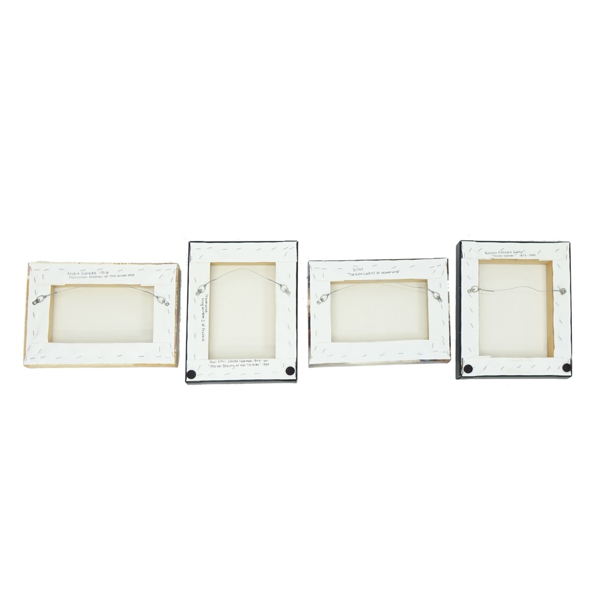 Grouping of Four (4) Photoreproduction Prints on Canvas of Orientalist Portraits After Listed Artists. Largest measures 14" H x 11-1/2", smallest measures 10-1/2" x 14". Provenance: The estate of Leon Amar, Palm Beach, Florida. Condition: Good condition Estimate: $100.00 - $200.00 Domestic Shipping: $72.00
