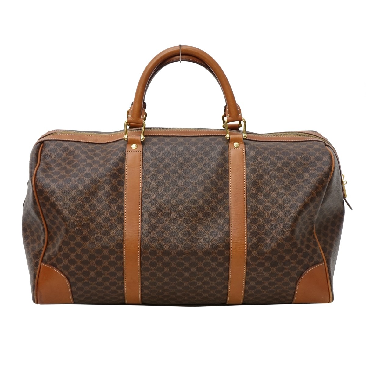 Celine Brown Leather 45 Weekender Travel Bag with Gold Hardware. Appropriately labeled. Zippered closure opens to a interior pocket with zipper. Measures 8-1/2" x 18" x 9". Condition: Some wear to the trim and scuffs, or else good condition. Estimate: $200.00 - $500.00 Domestic Shipping: $62.00