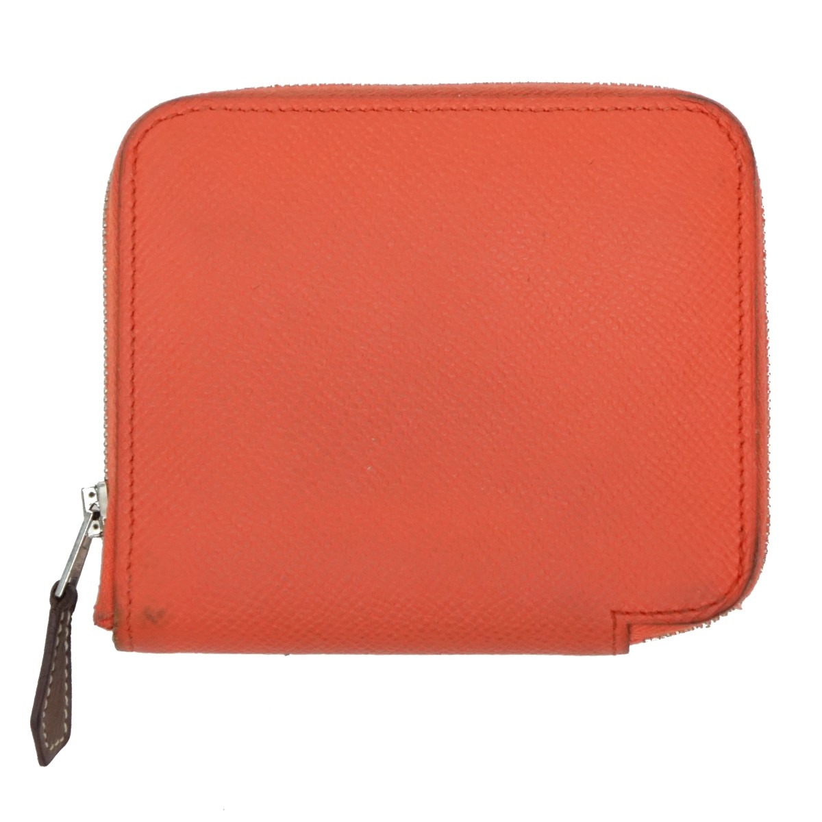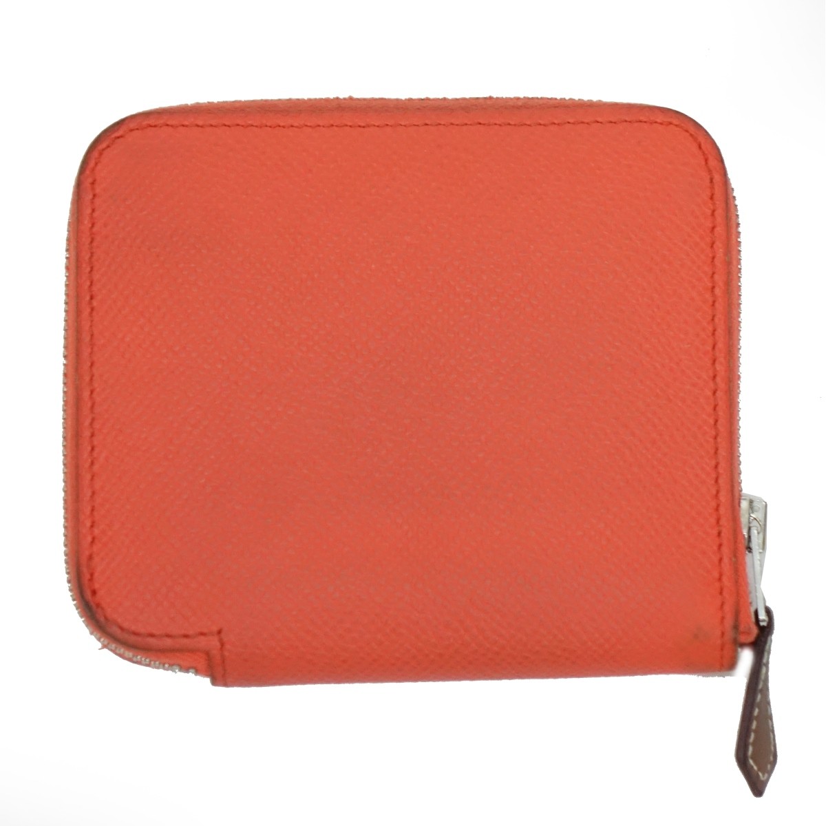 Hermes Epsom Azap Mini Wallet. All around zippered closure opens up to single zippered pocket and card slots. Serial number A-TS-003-AU. Measures 3-3/4' x 4-3/8". Condition: Appears to have some signs of use, rubbing to edges, some discoloration to interior zippered pocket or else good condition. Estimate: $200.00 - $400.00 Domestic Shipping: $36.00